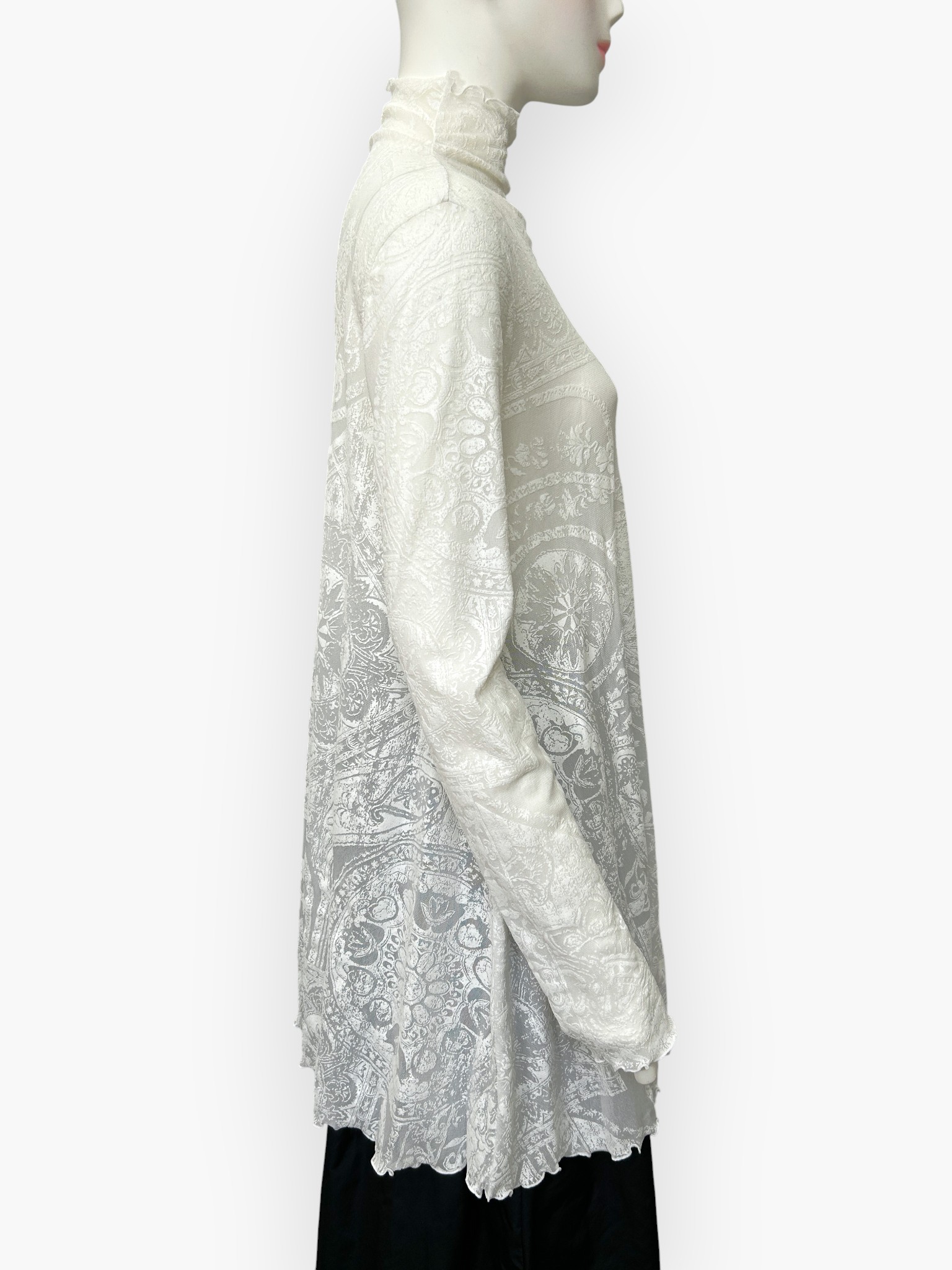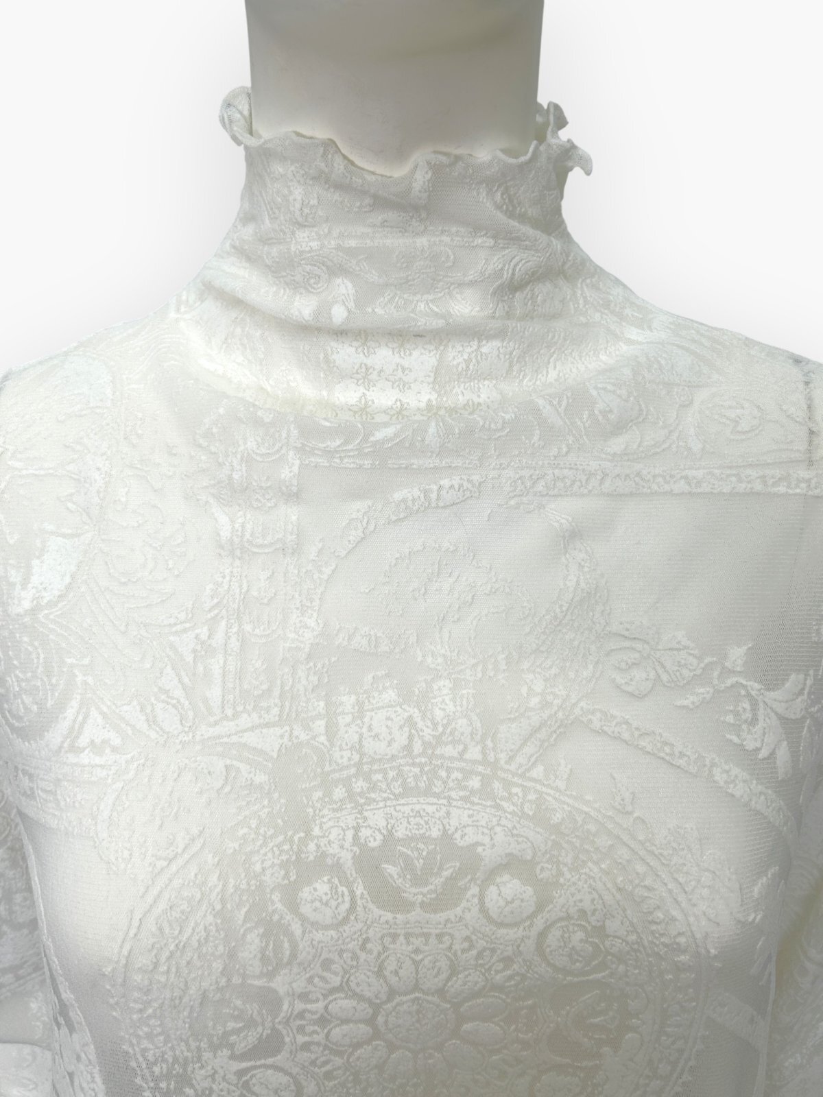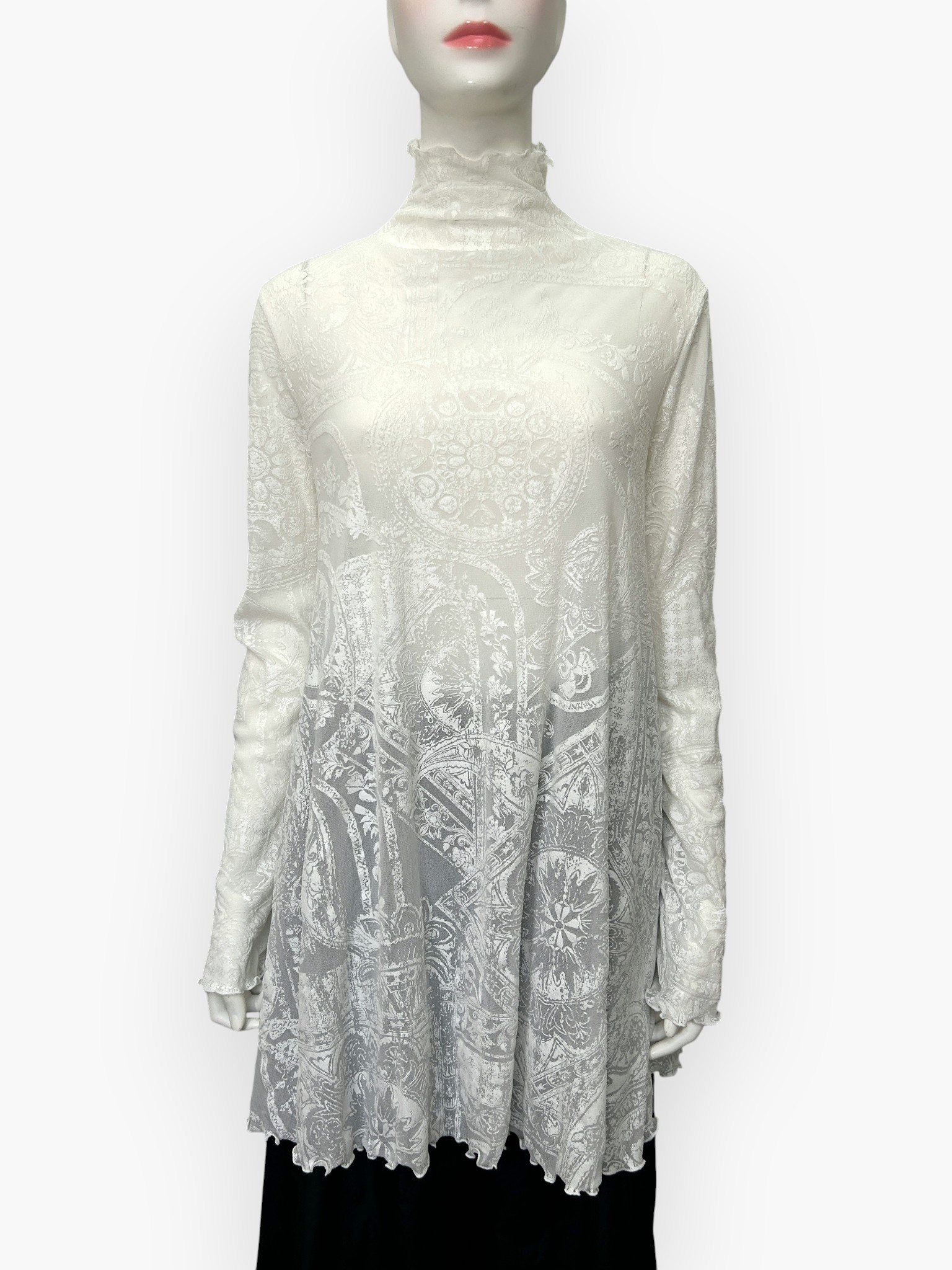 上品な透け感のフロッキーチュールはきれい目なカジュアルスタイルからエレガントスタイルまで楽しめます。