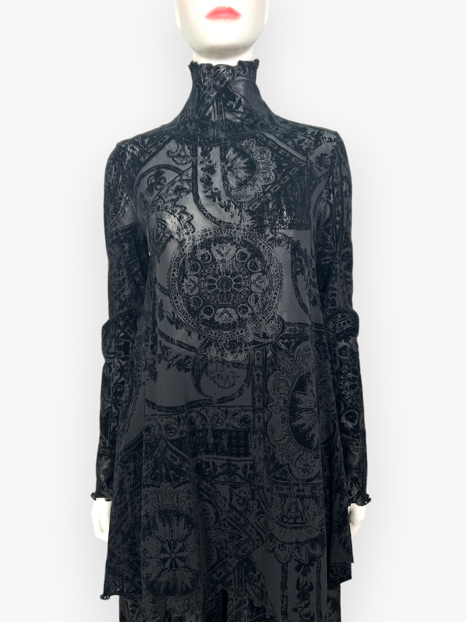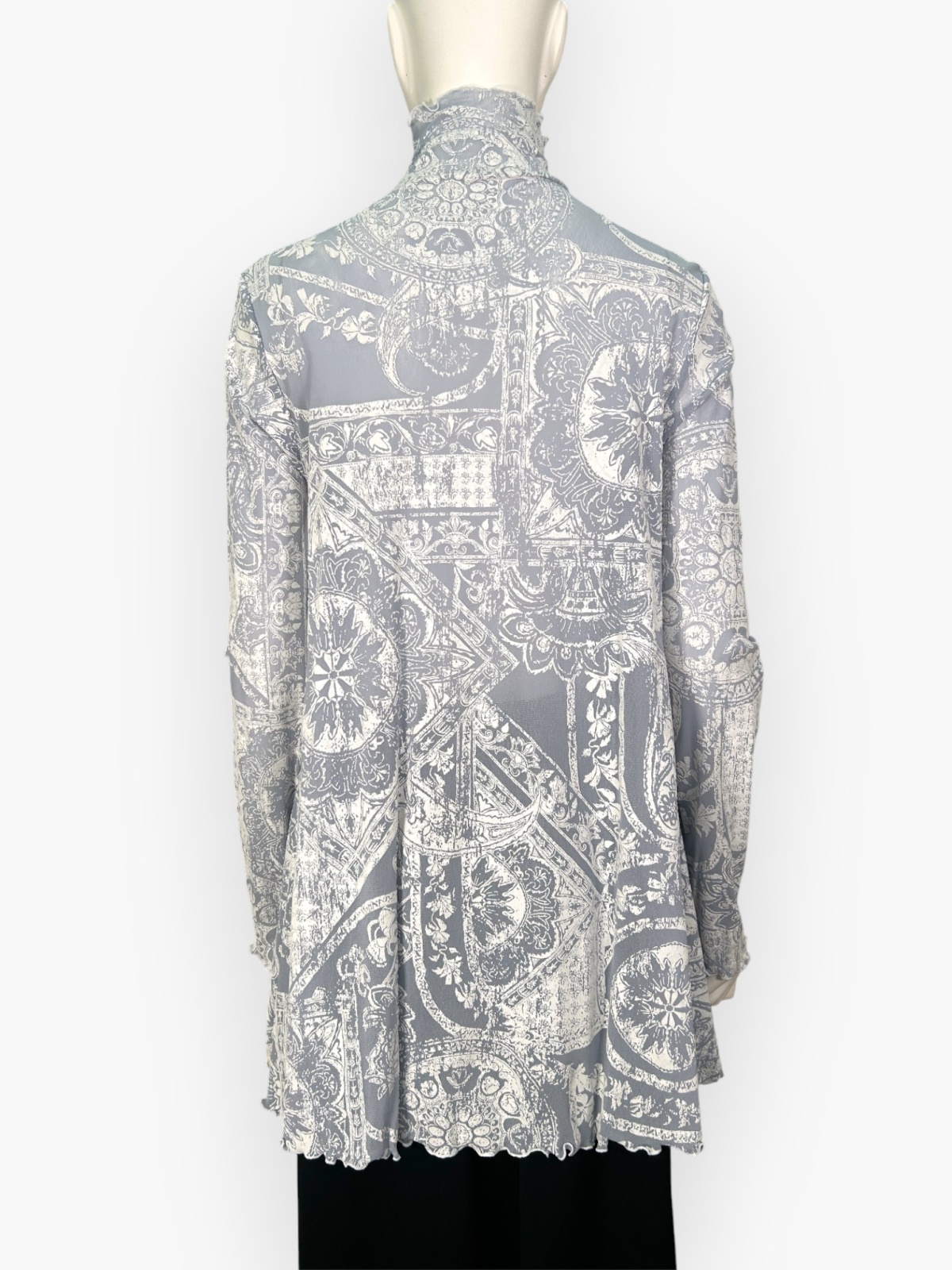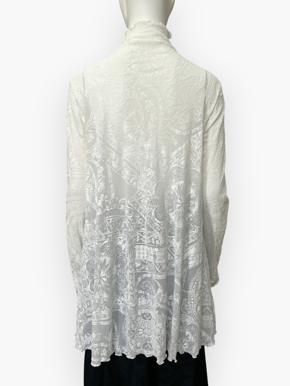 上品な透け感のフロッキーチュールはきれい目なカジュアルスタイルからエレガントスタイルまで楽しめます。