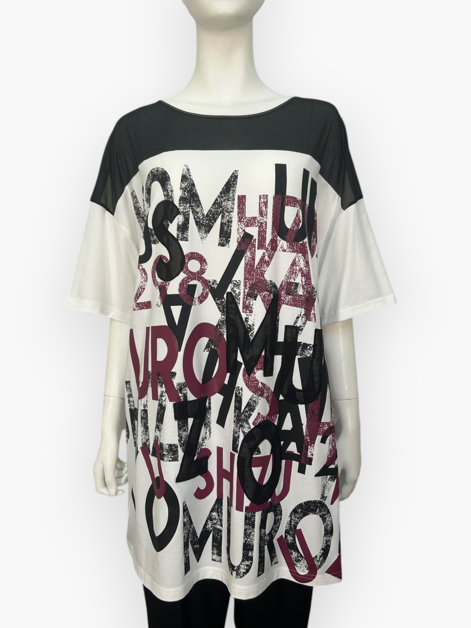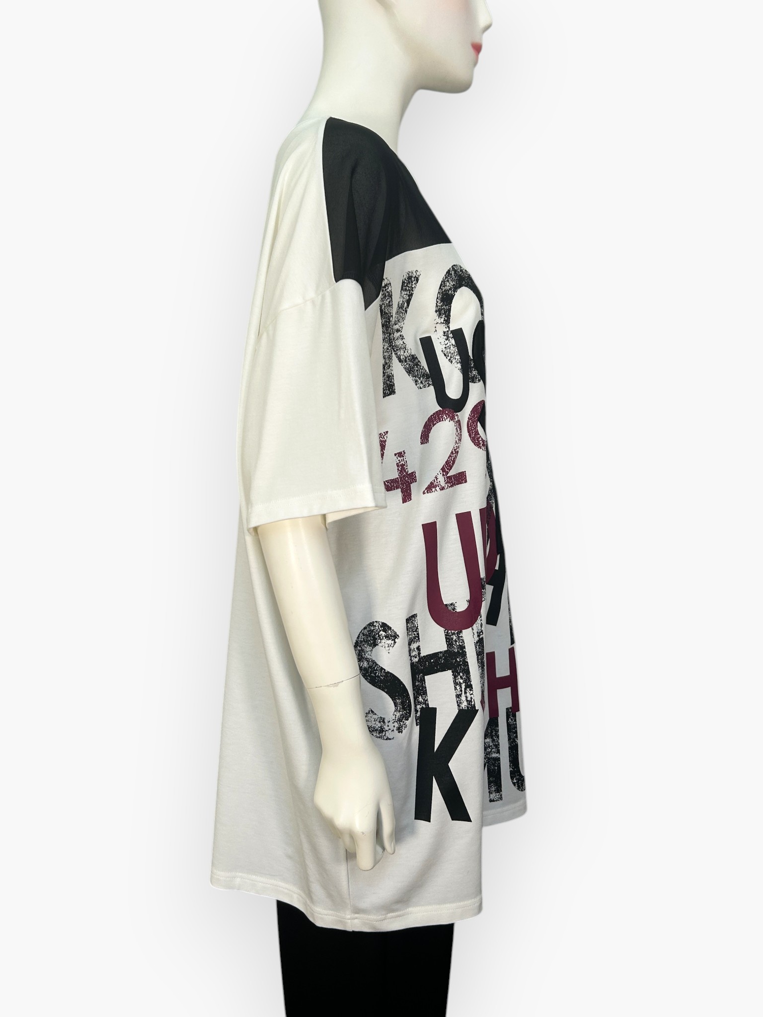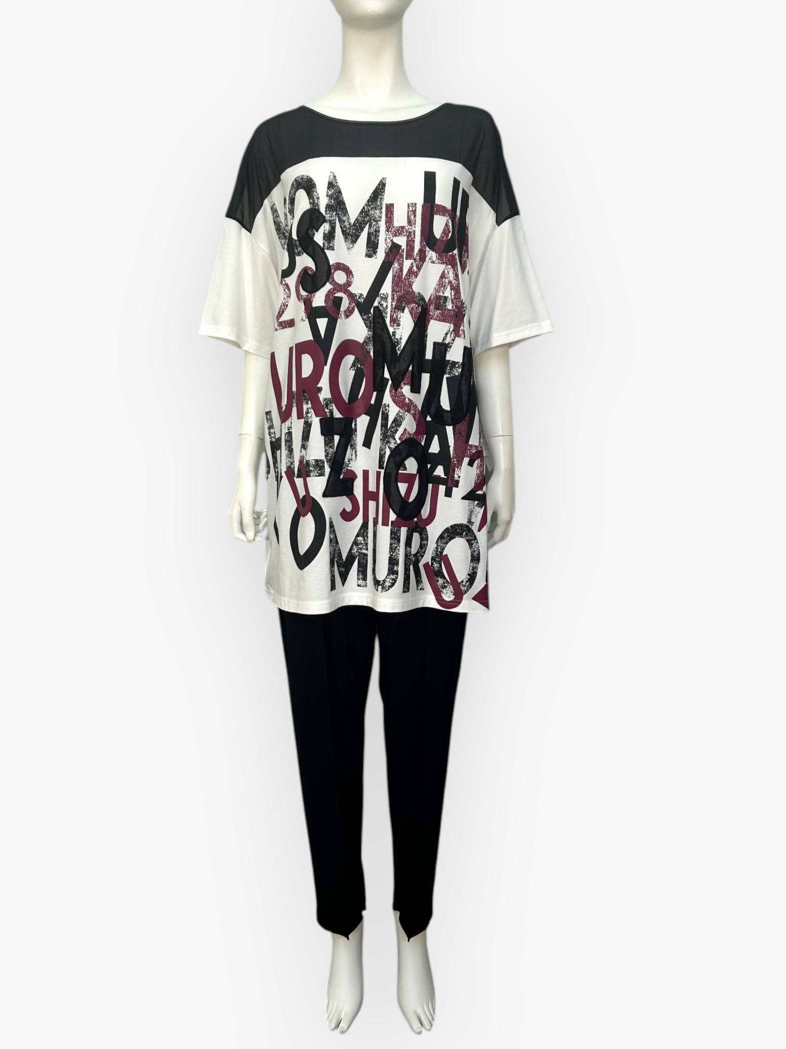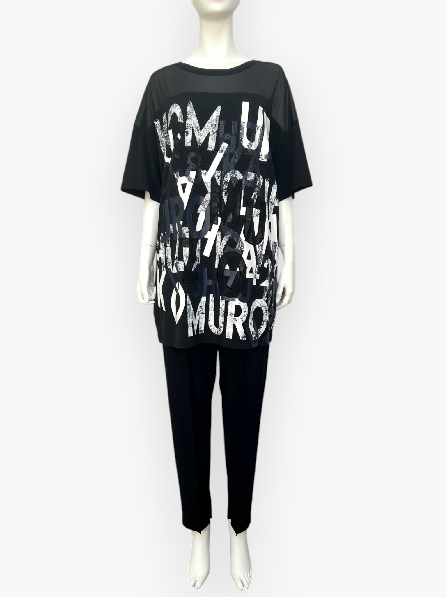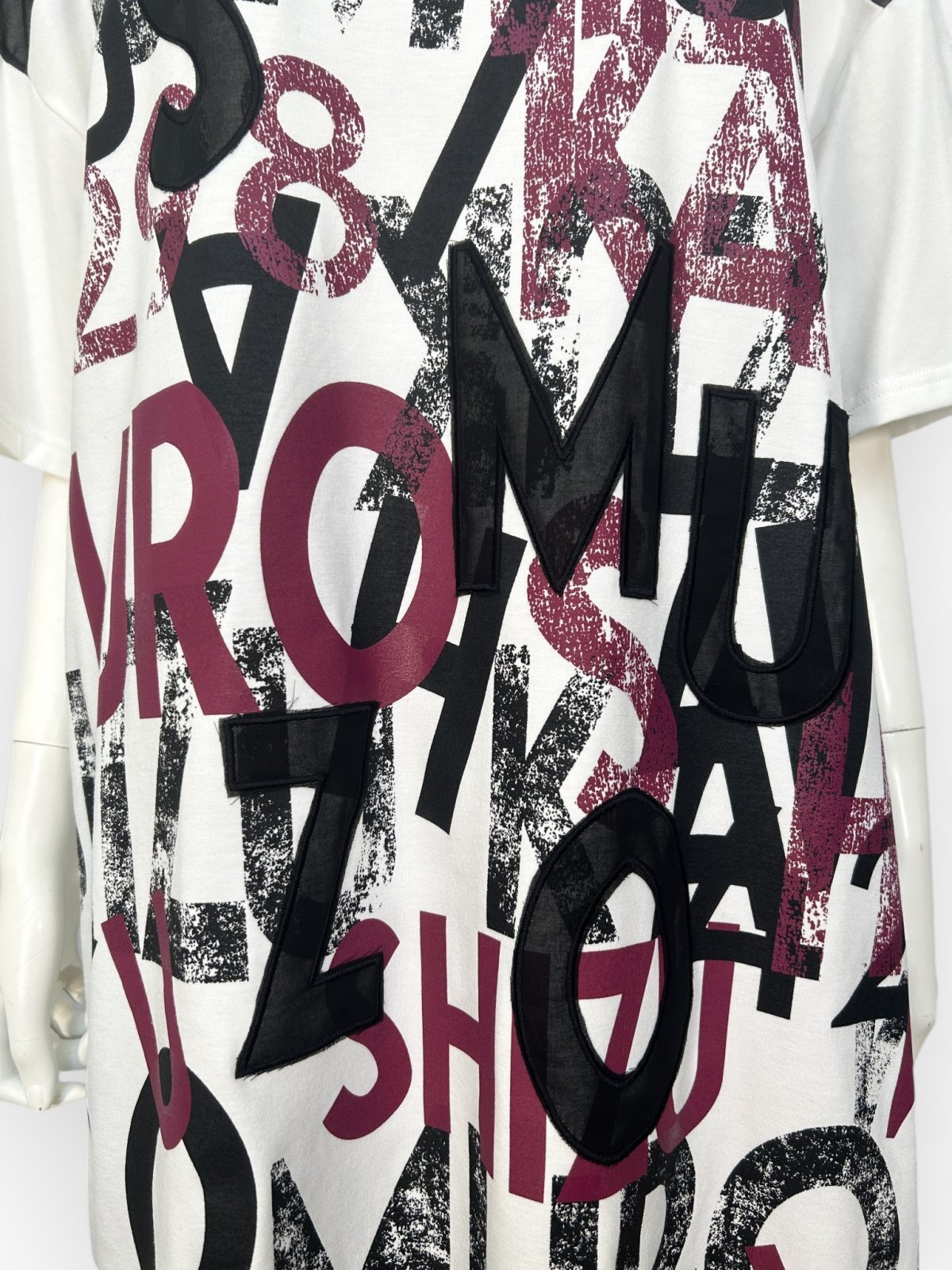 4298SHIZUKAKOMUROのロゴをイレギュラーに配置したオリジナルプリント&刺繍。