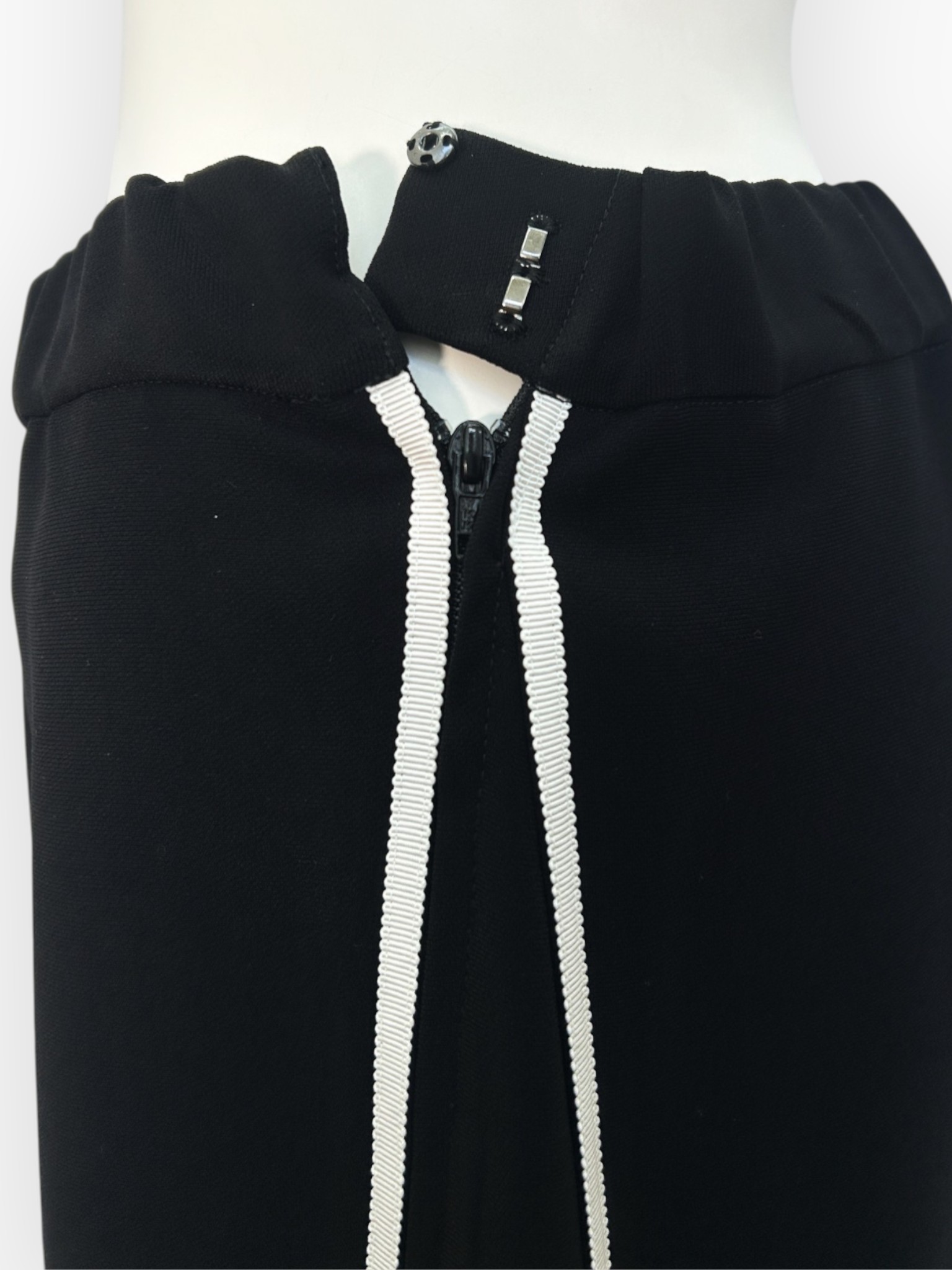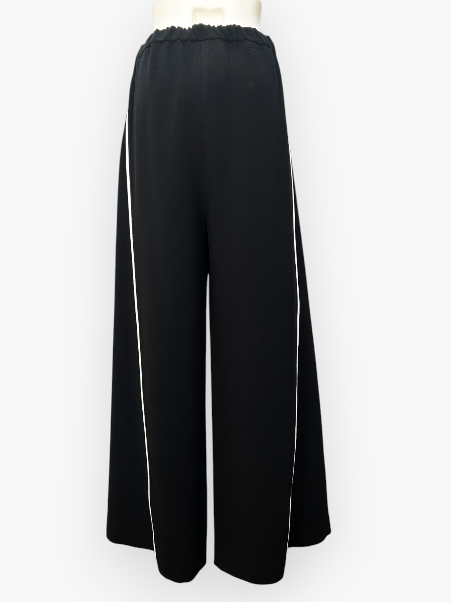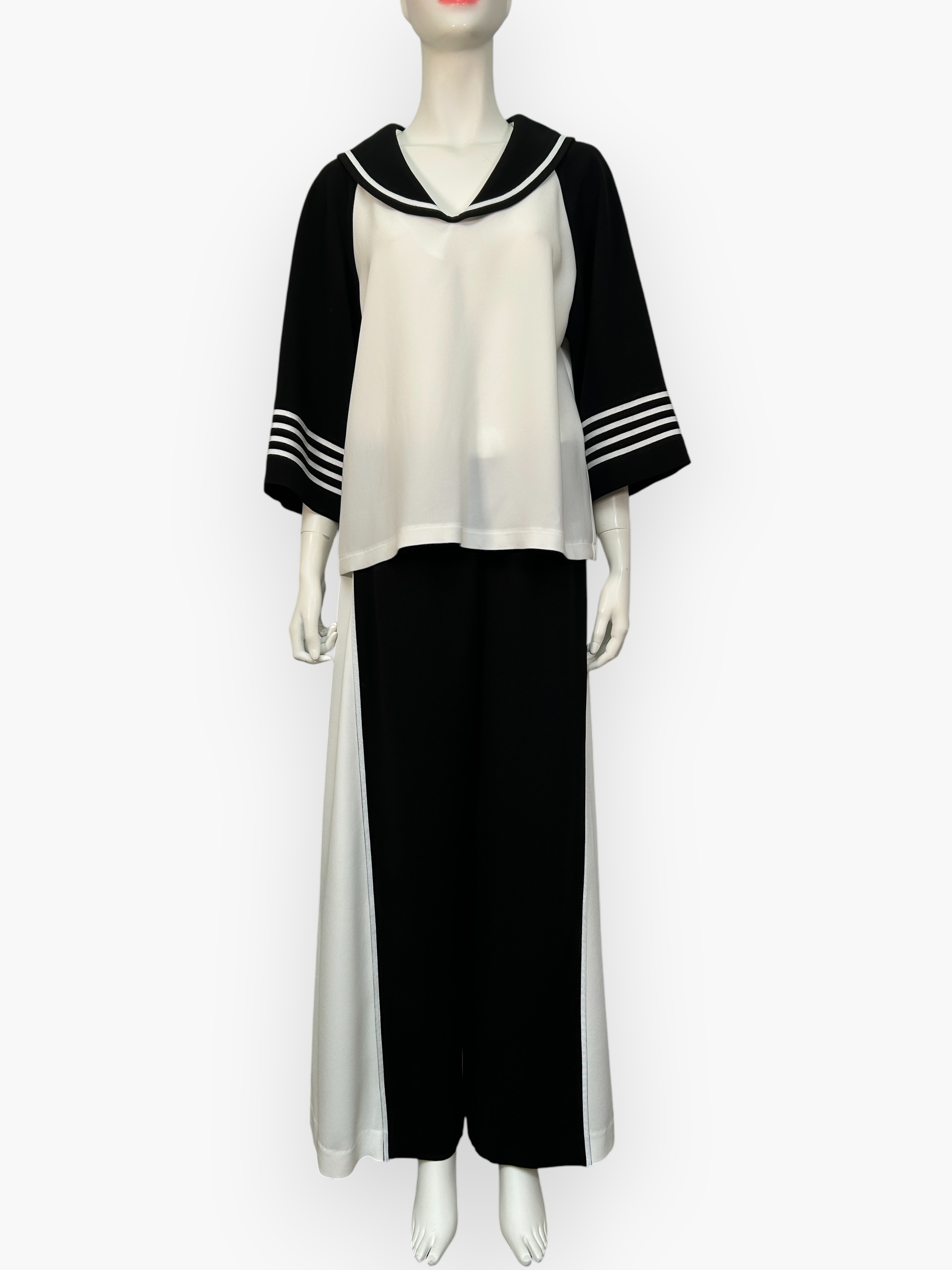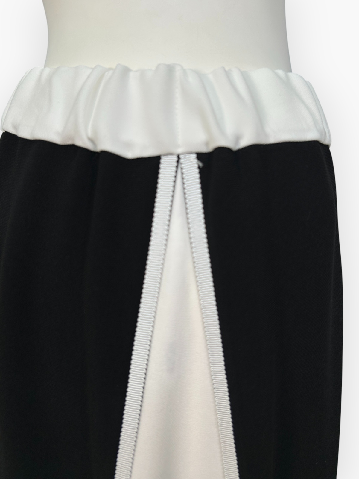 白黒の配色と差し色ラインでマリン風に仕上げたパンツ。