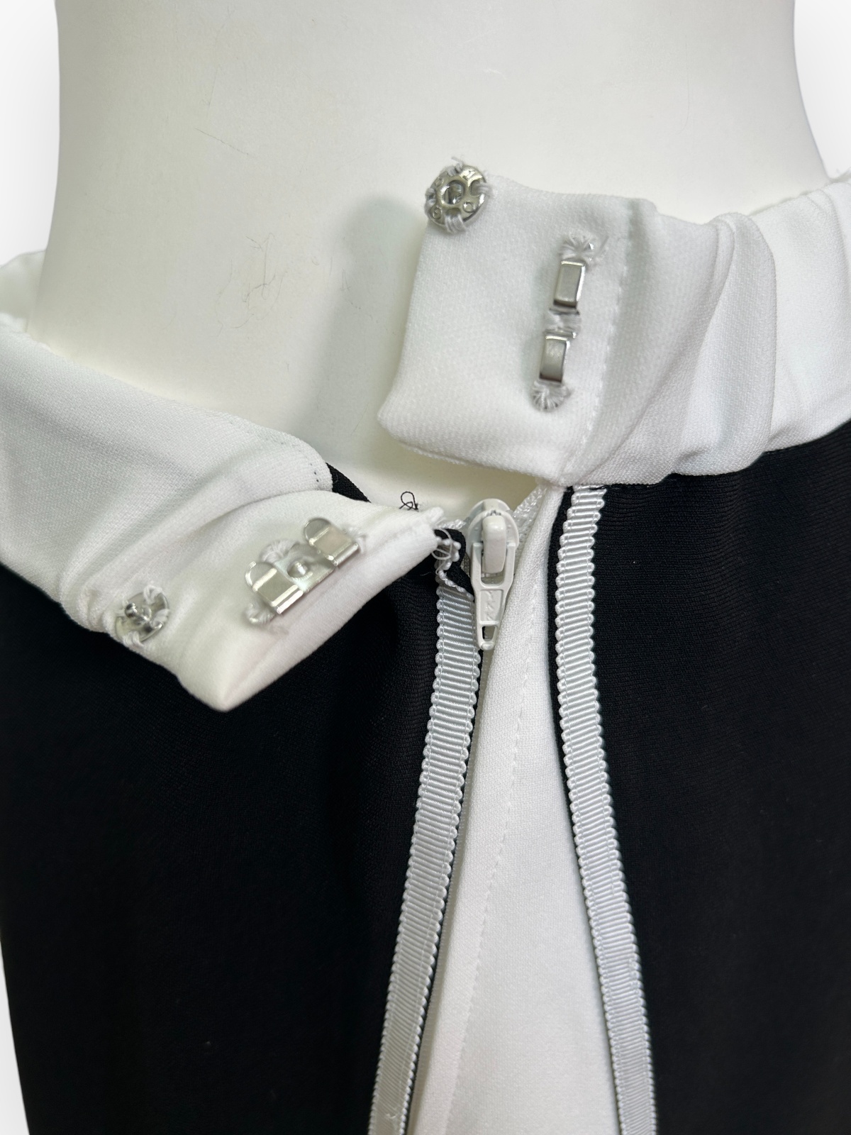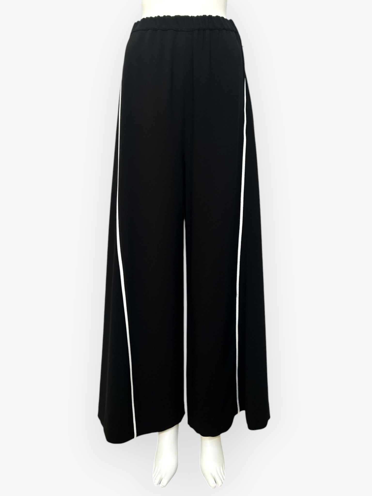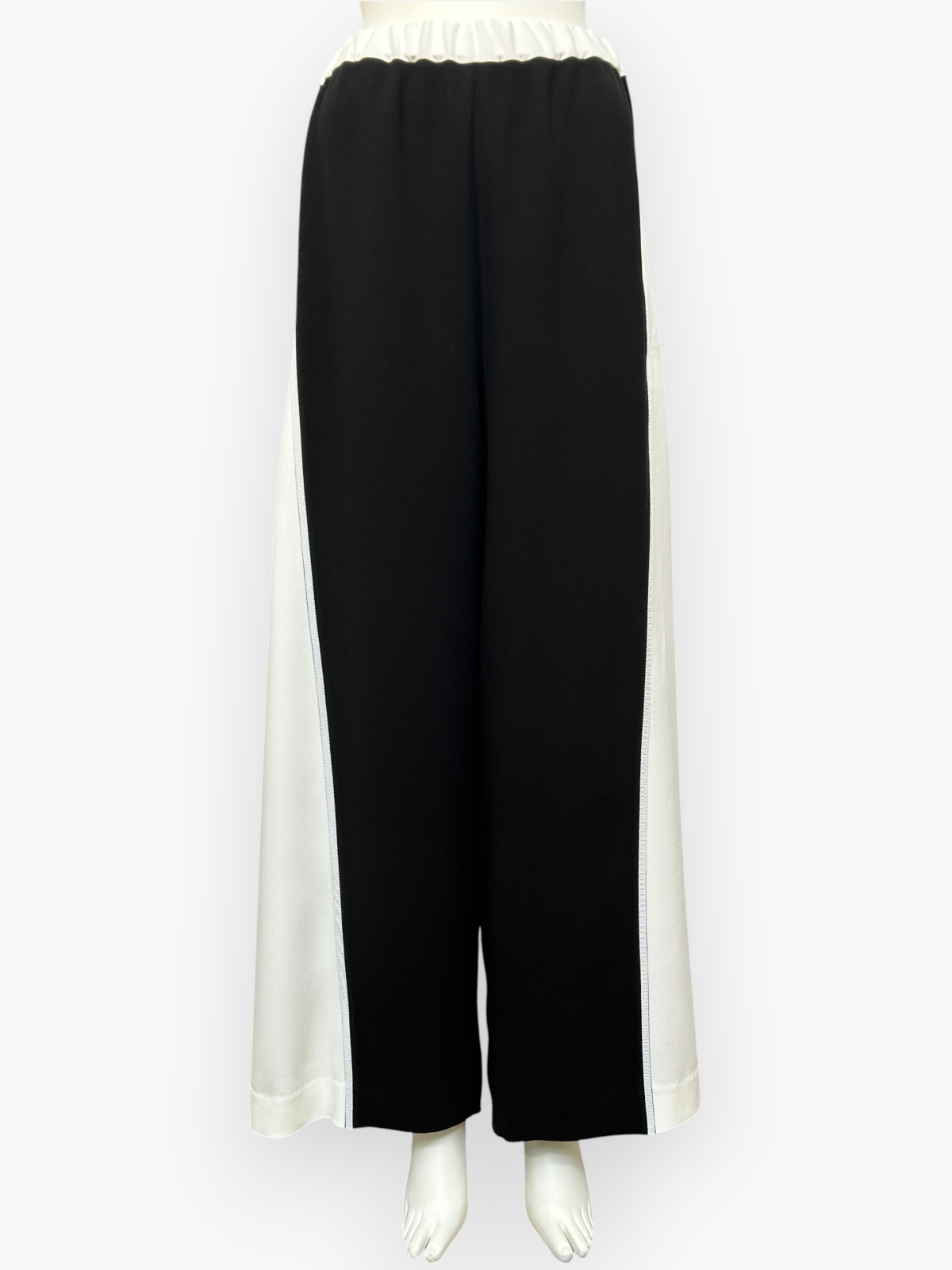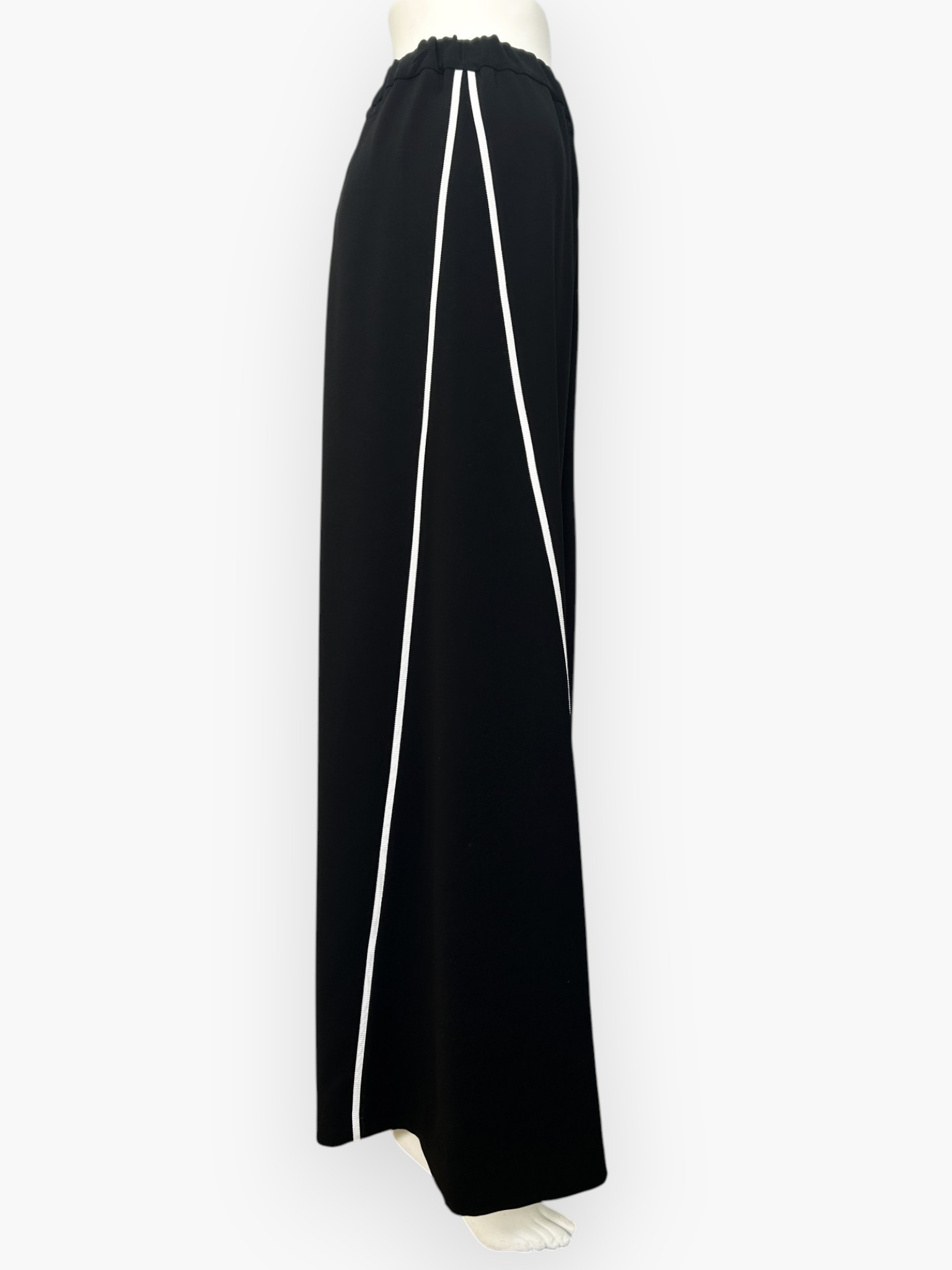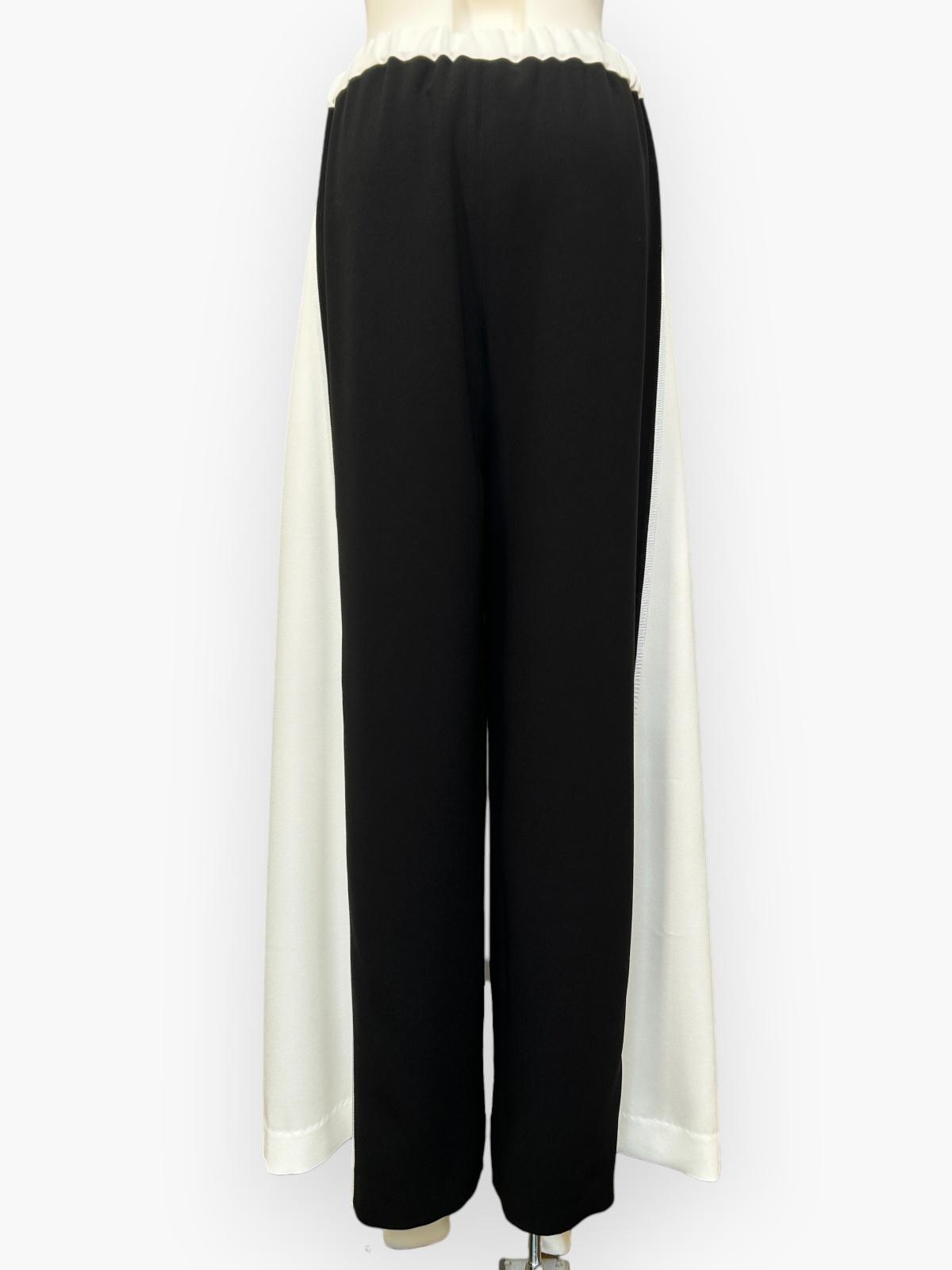 白黒の配色と差し色ラインでマリン風に仕上げたパンツ。