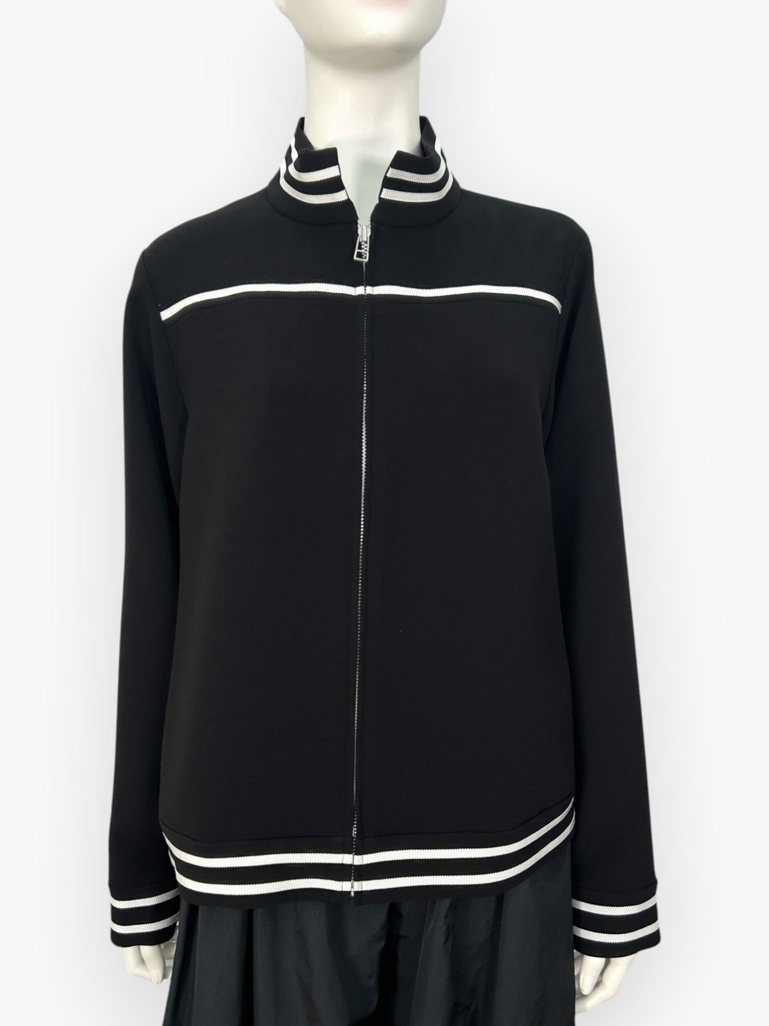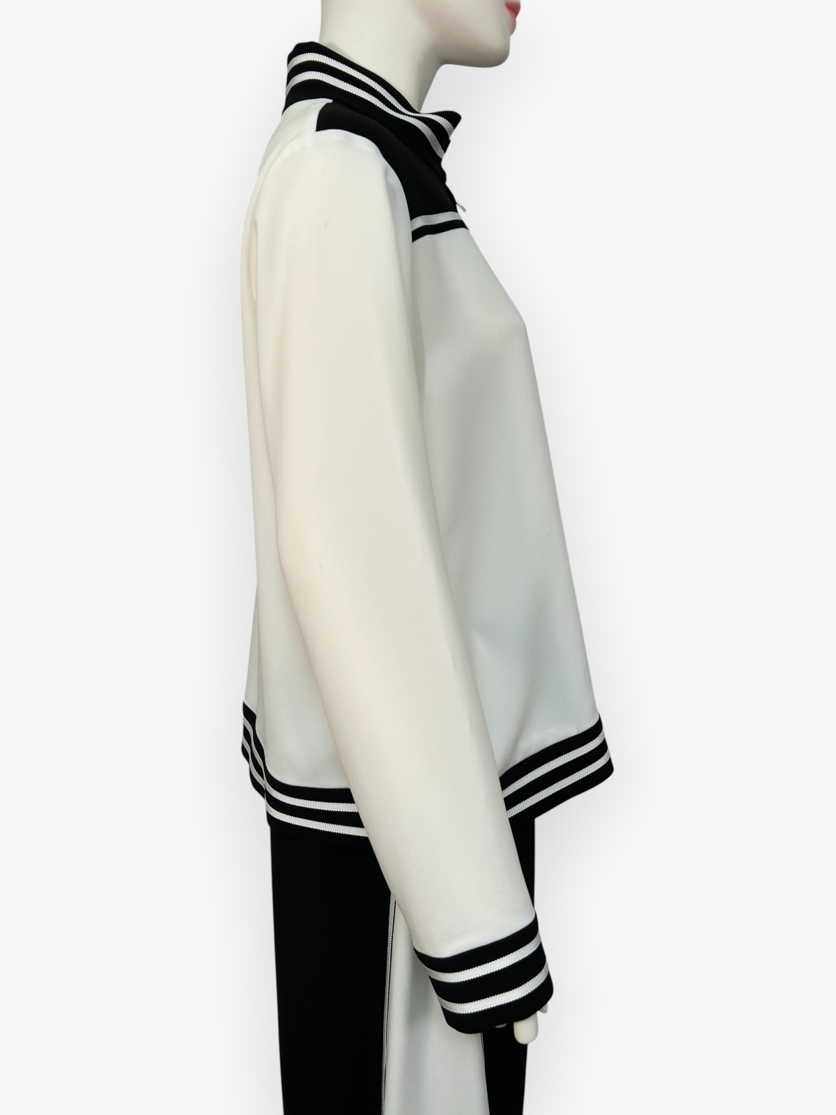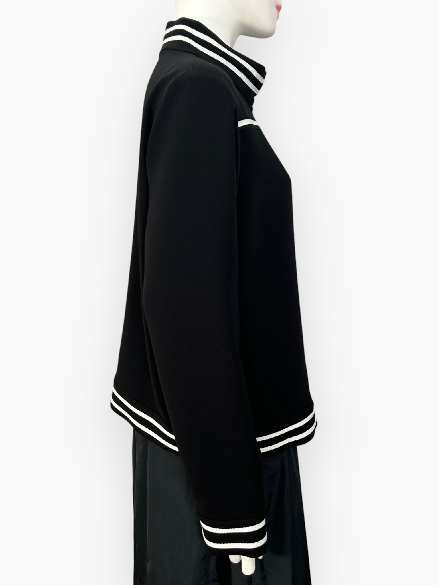 白黒の配色と差し色ラインでマリン風に仕上げたブルゾン。