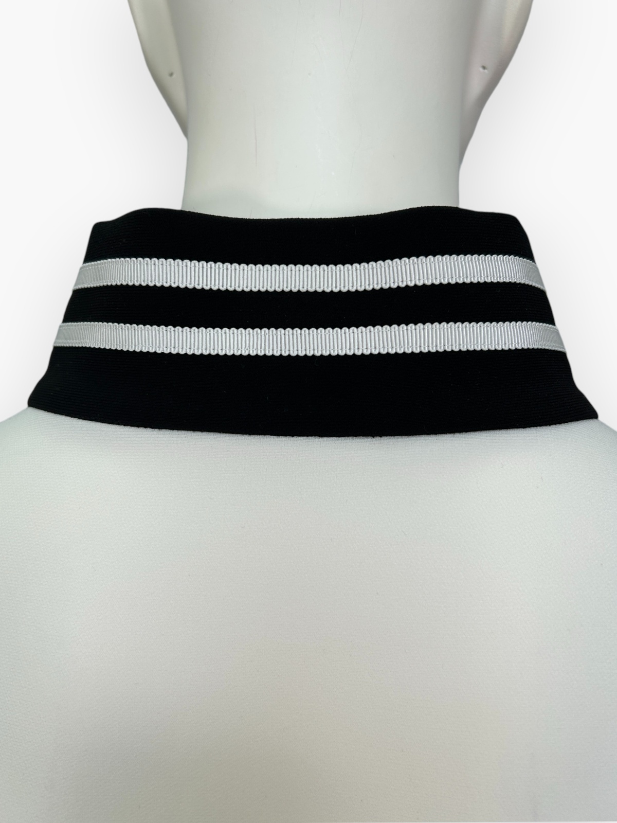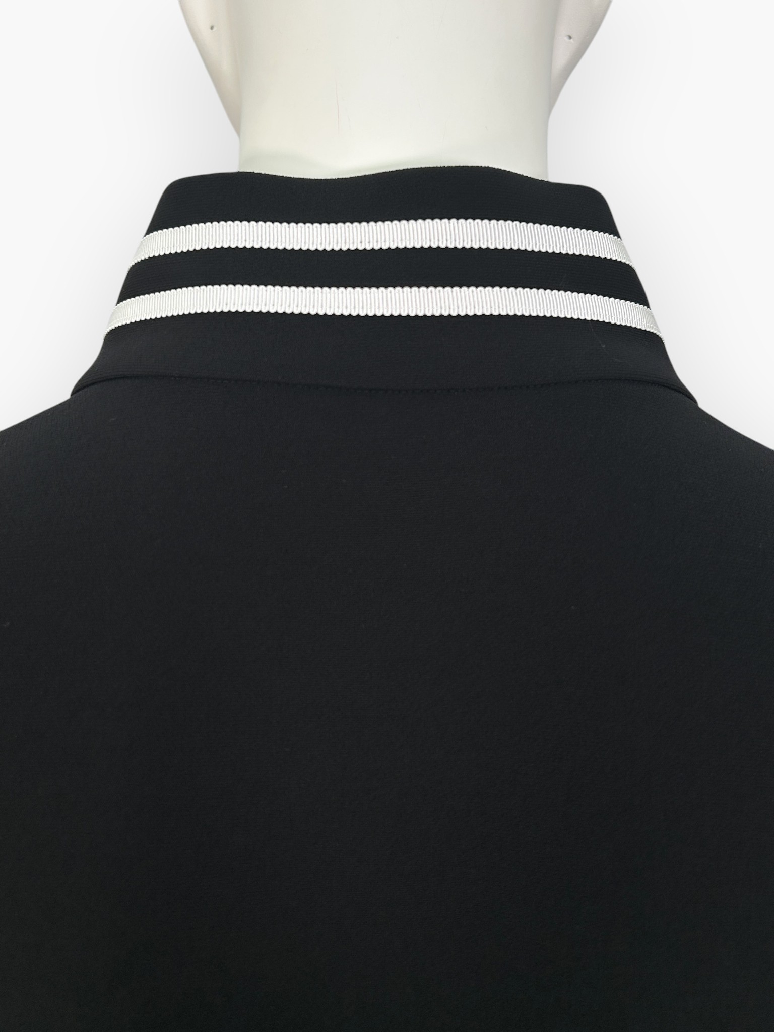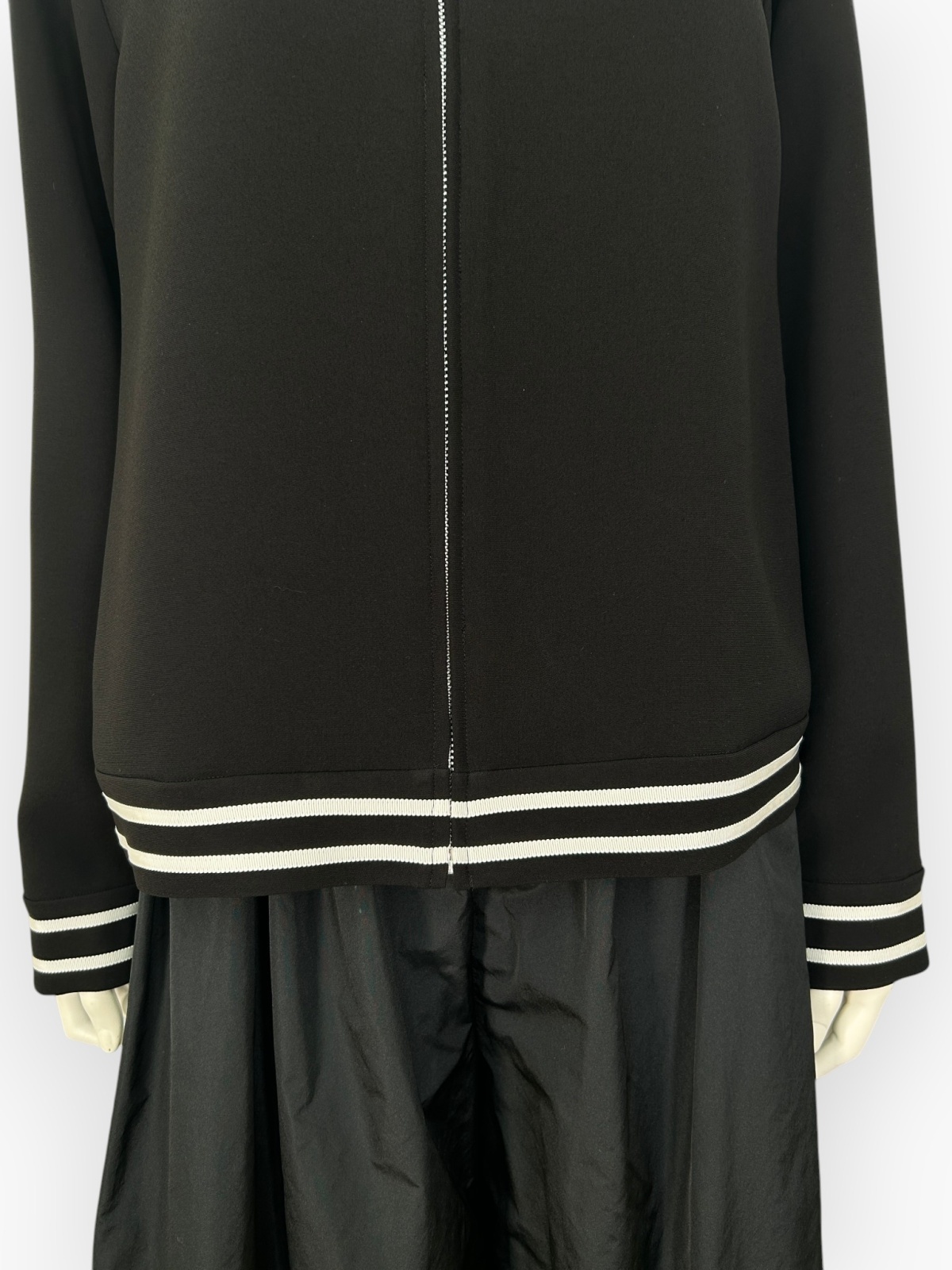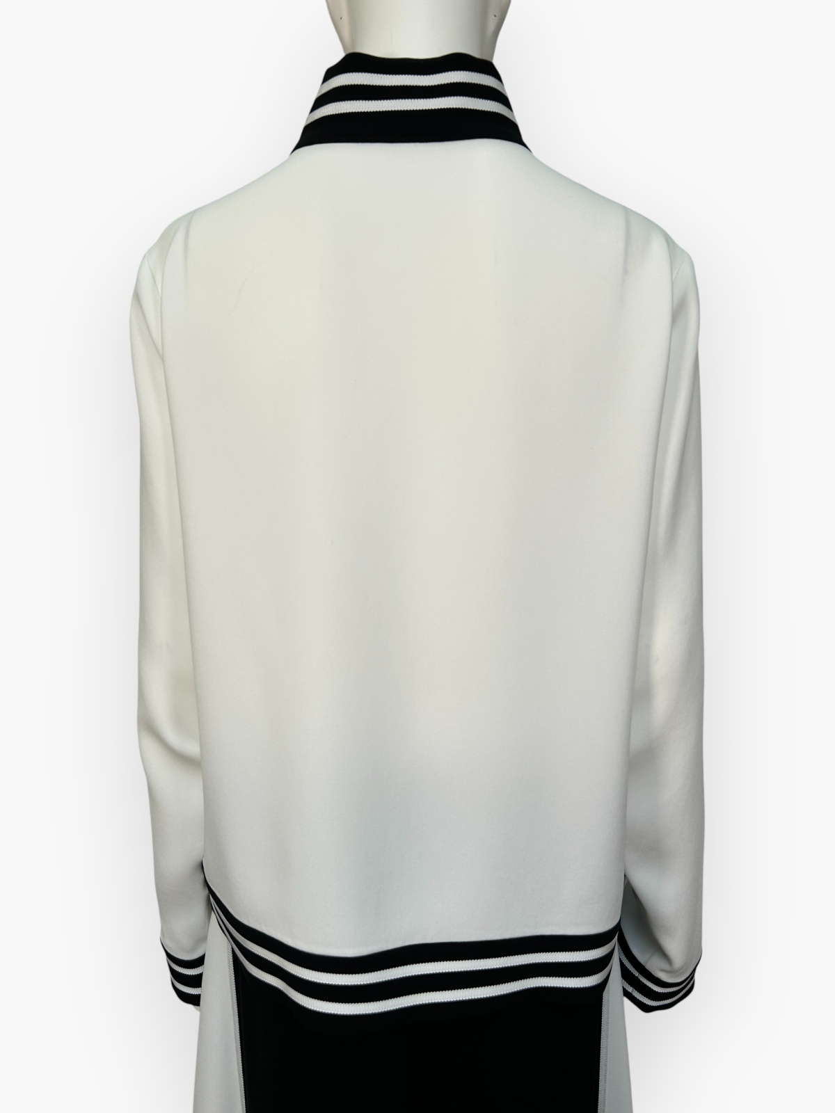 白黒の配色と差し色ラインでマリン風に仕上げたブルゾン。