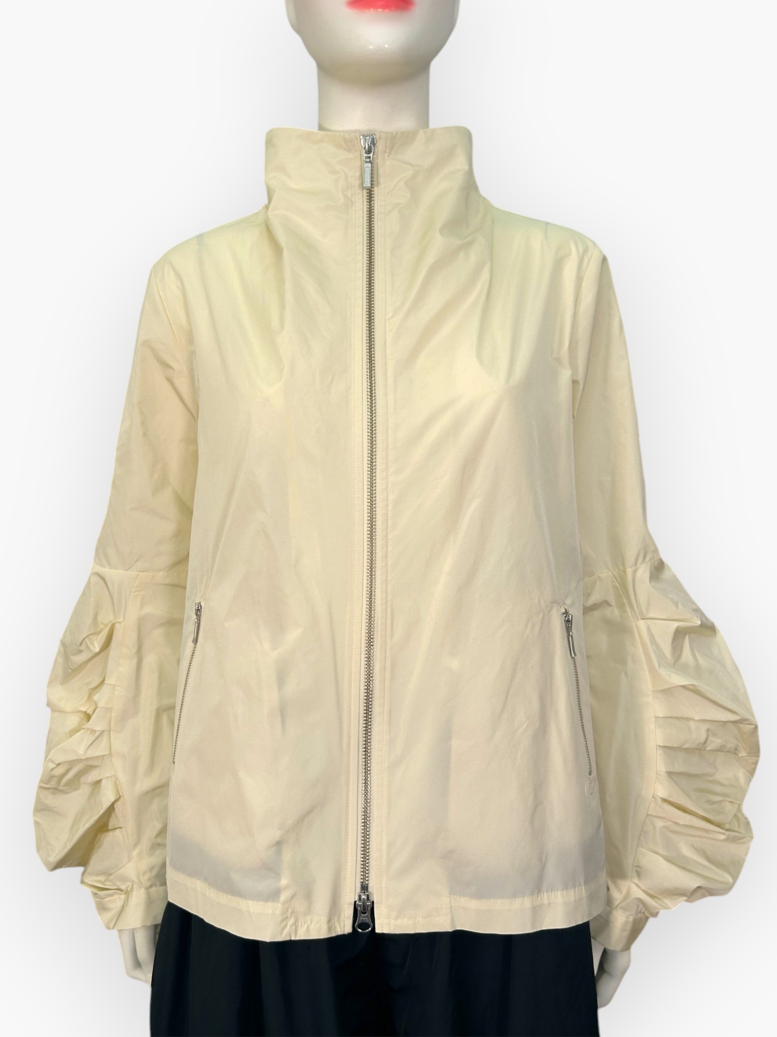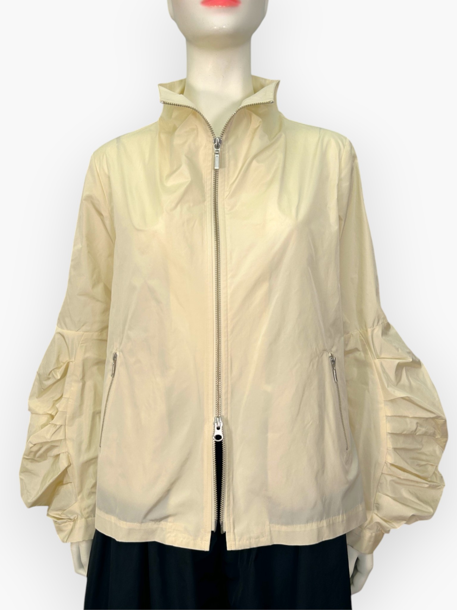 定番のタフタ生地をたっぷりと使用した、ボリューム感が可愛いブルゾン。