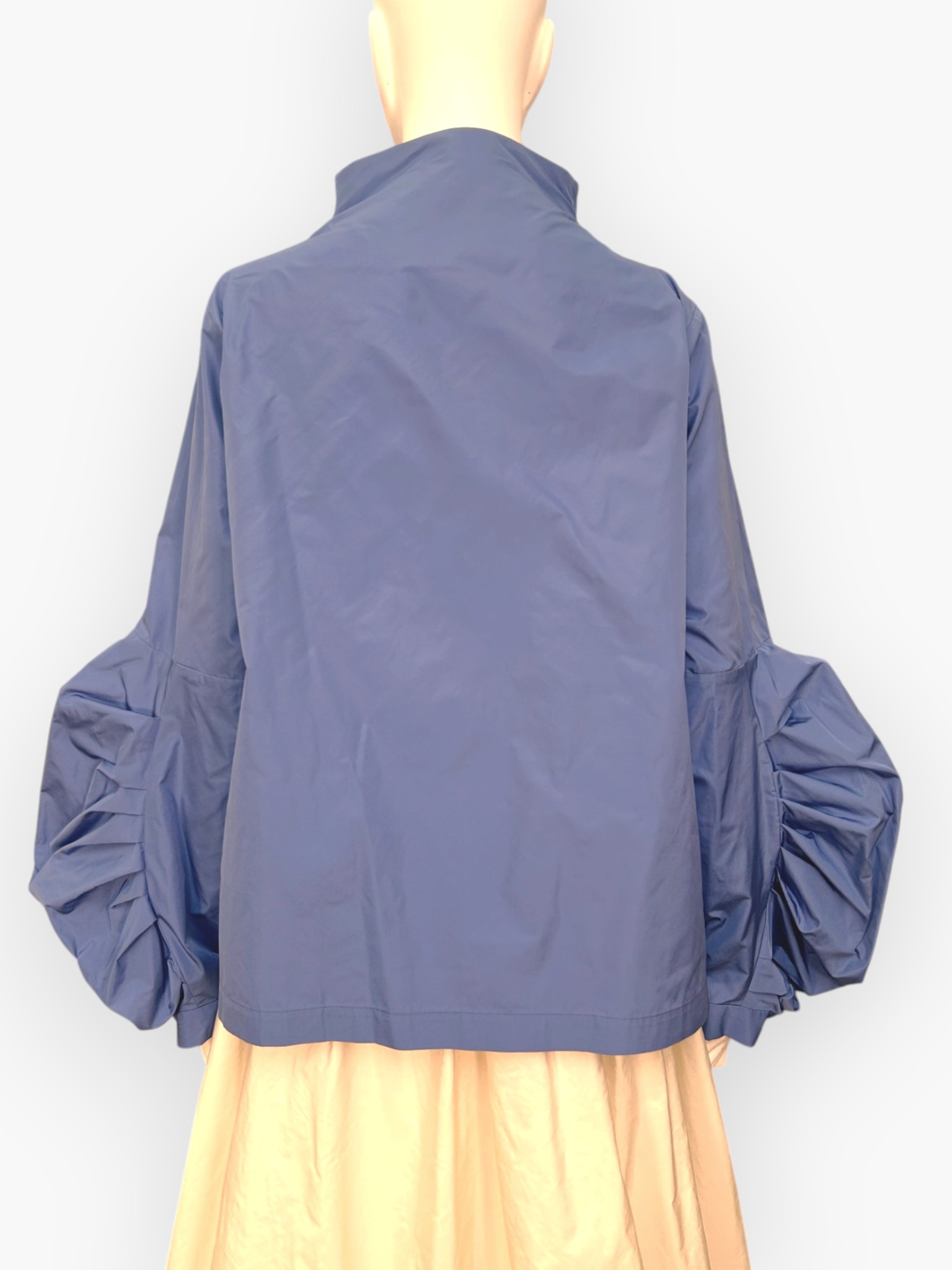形状記憶のマイクロタフタ。先染めのポリエステル糸を、高密度に織り上げた。軽さと膨らみを兼ね備えた、発色の良い素材。