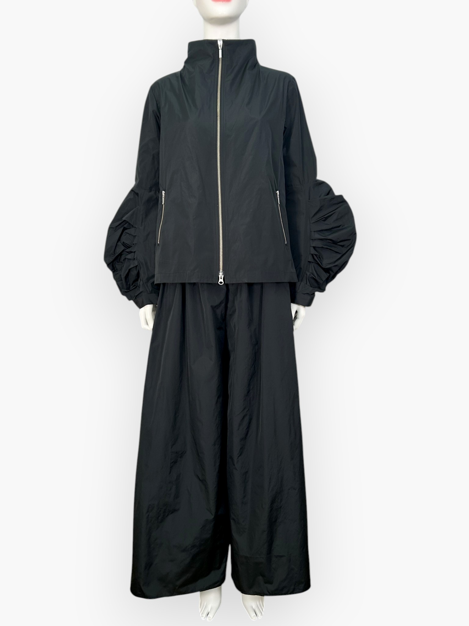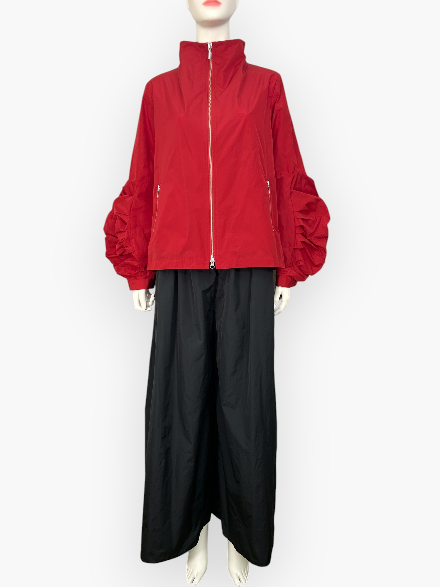 ダブルファスナーなのでバランスを取りやすく、さまざまなボトムと相性抜群。