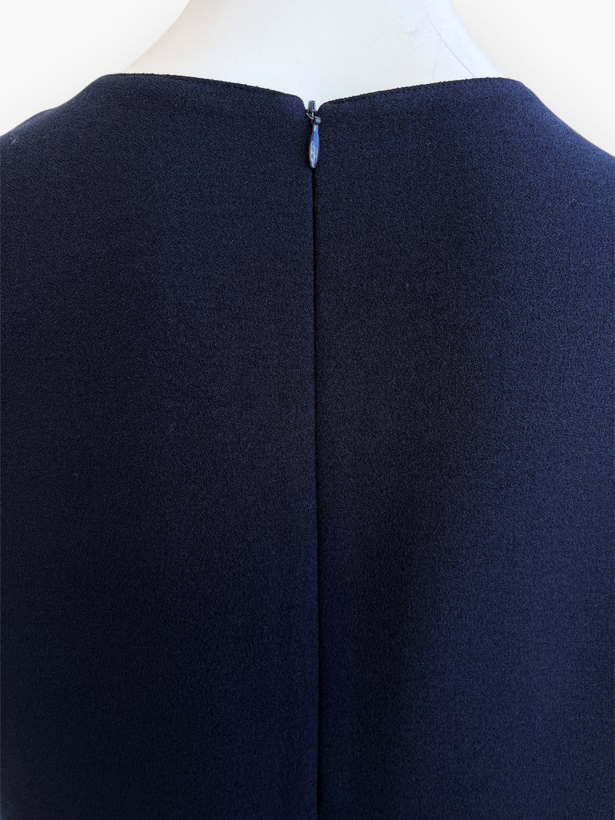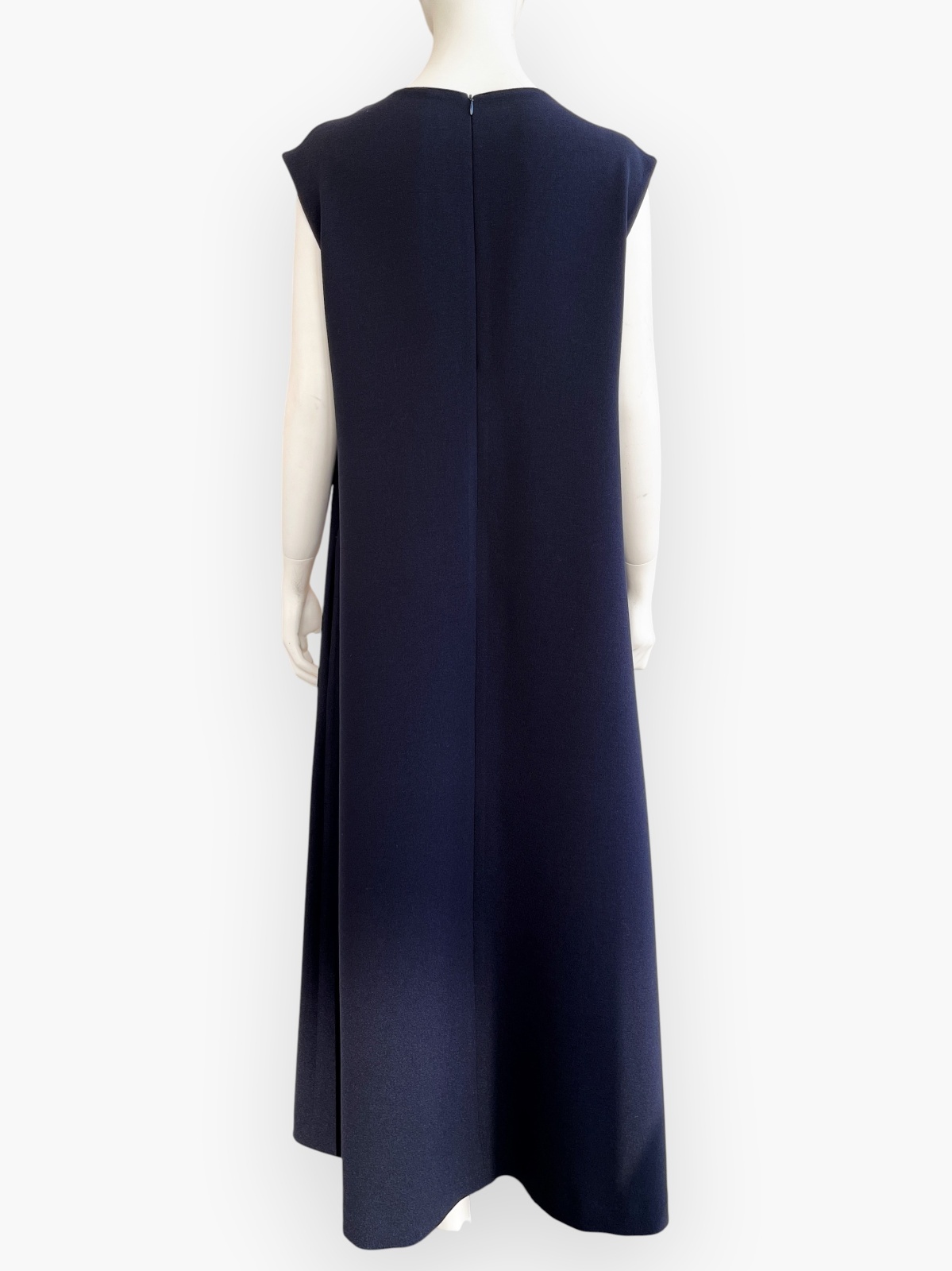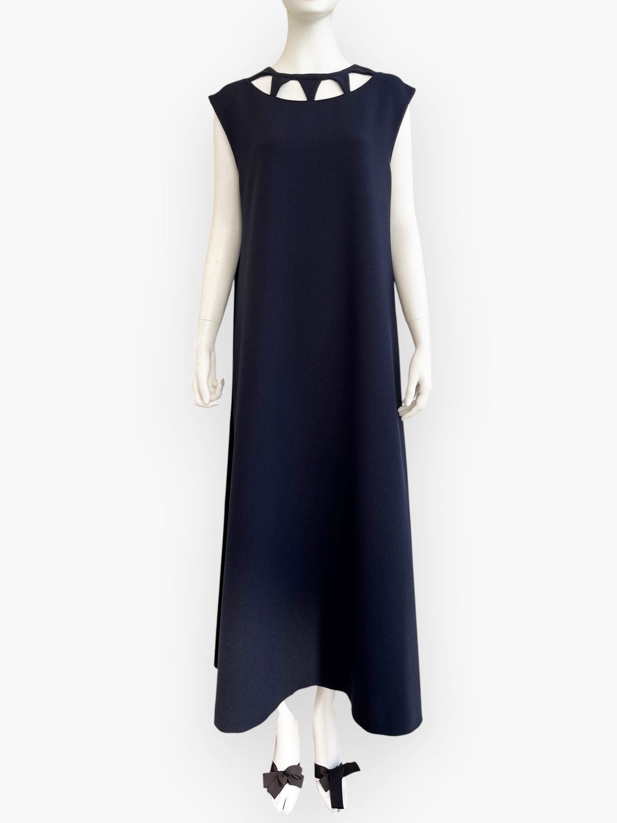 落ち着いたダークなネイビーカラーはブラックワンピースより軽やかな印象に。