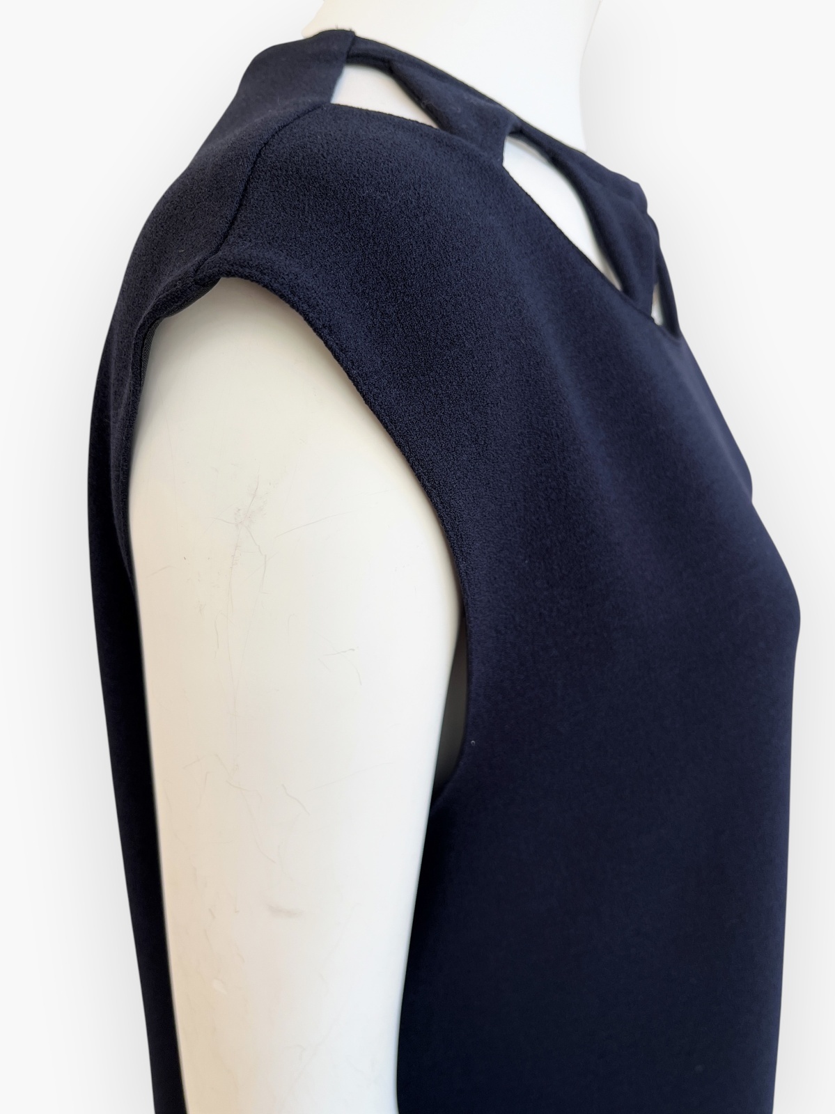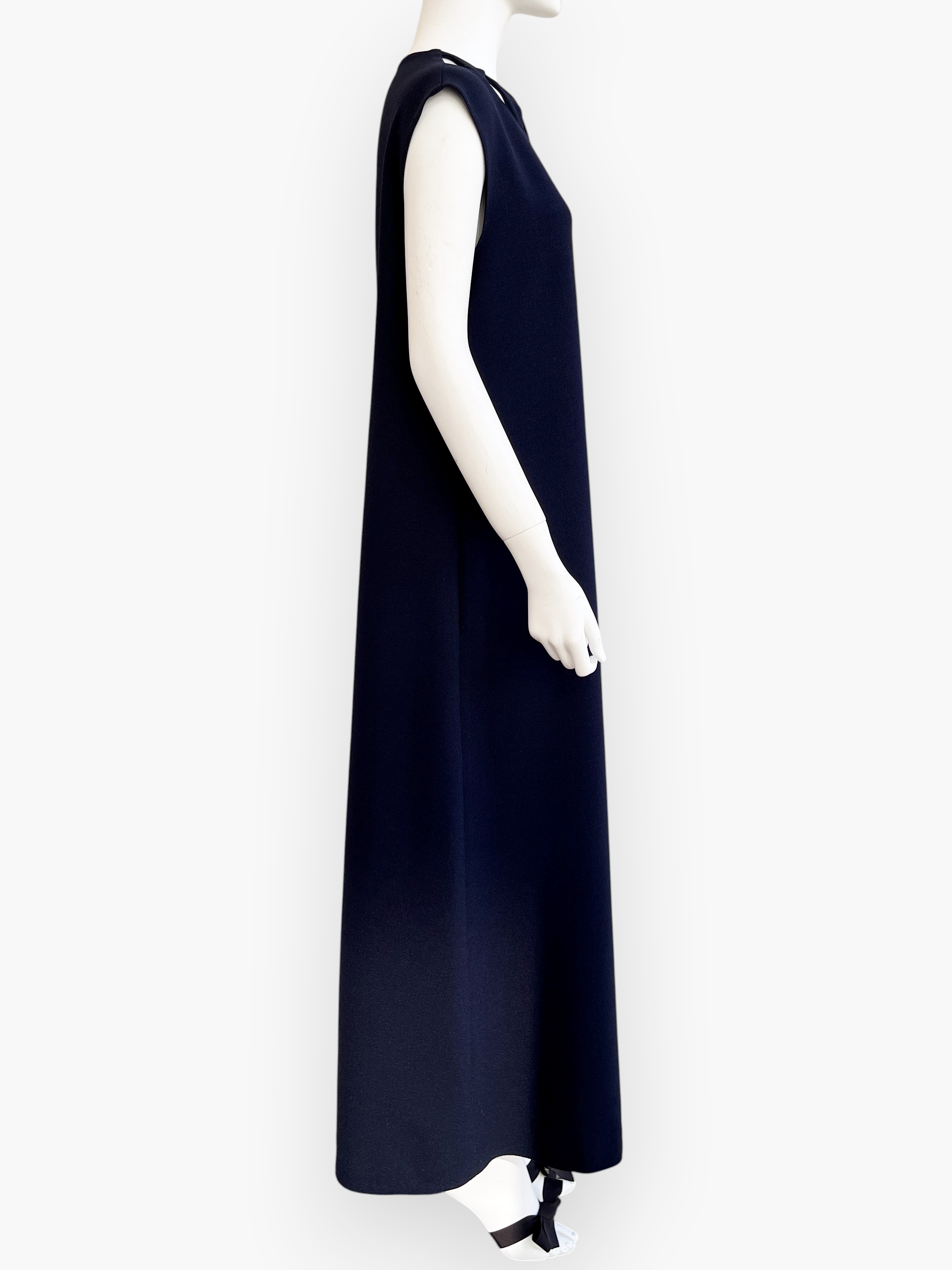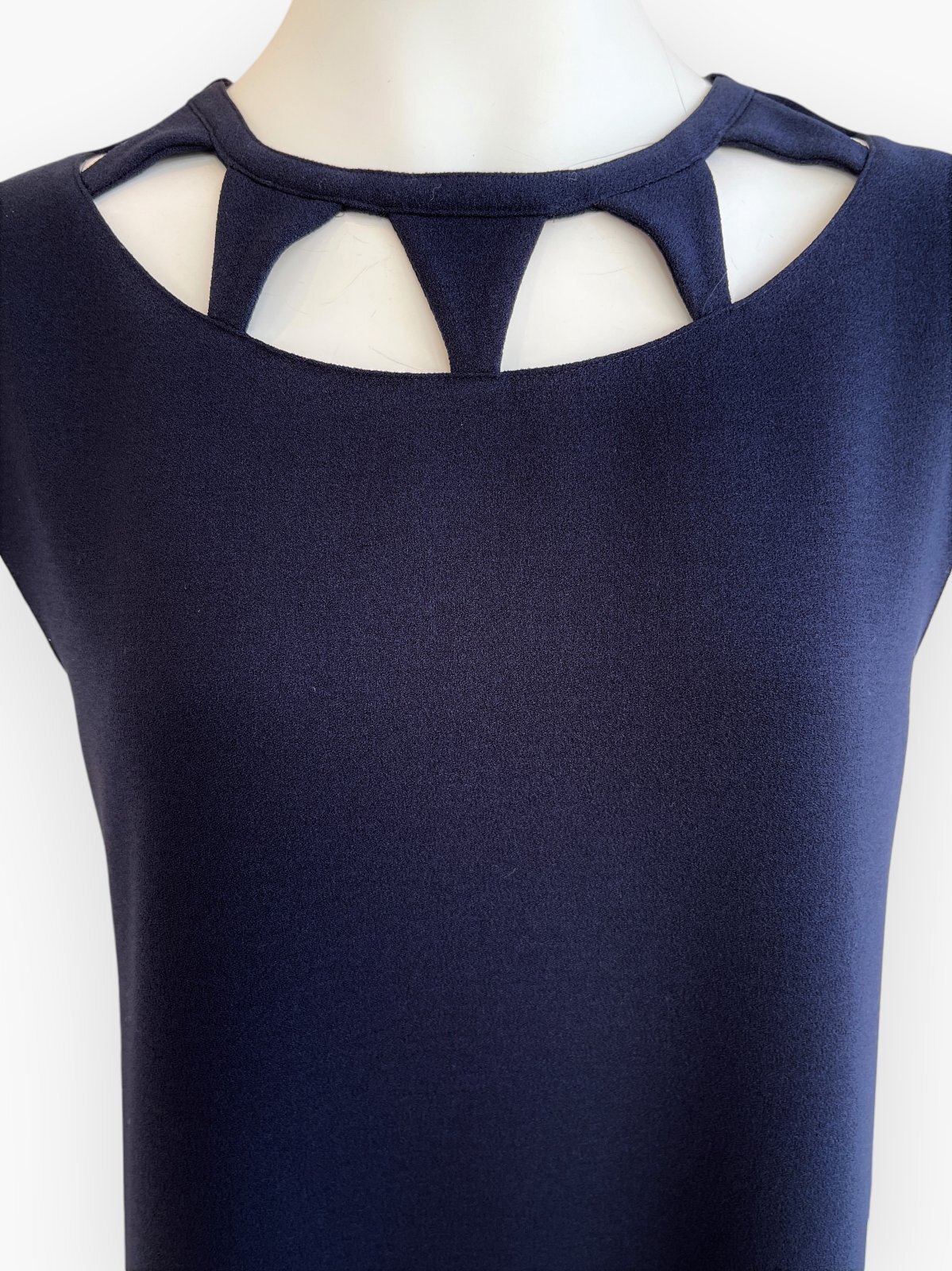 落ち着いたダークなネイビーカラーはブラックワンピースより軽やかな印象に。