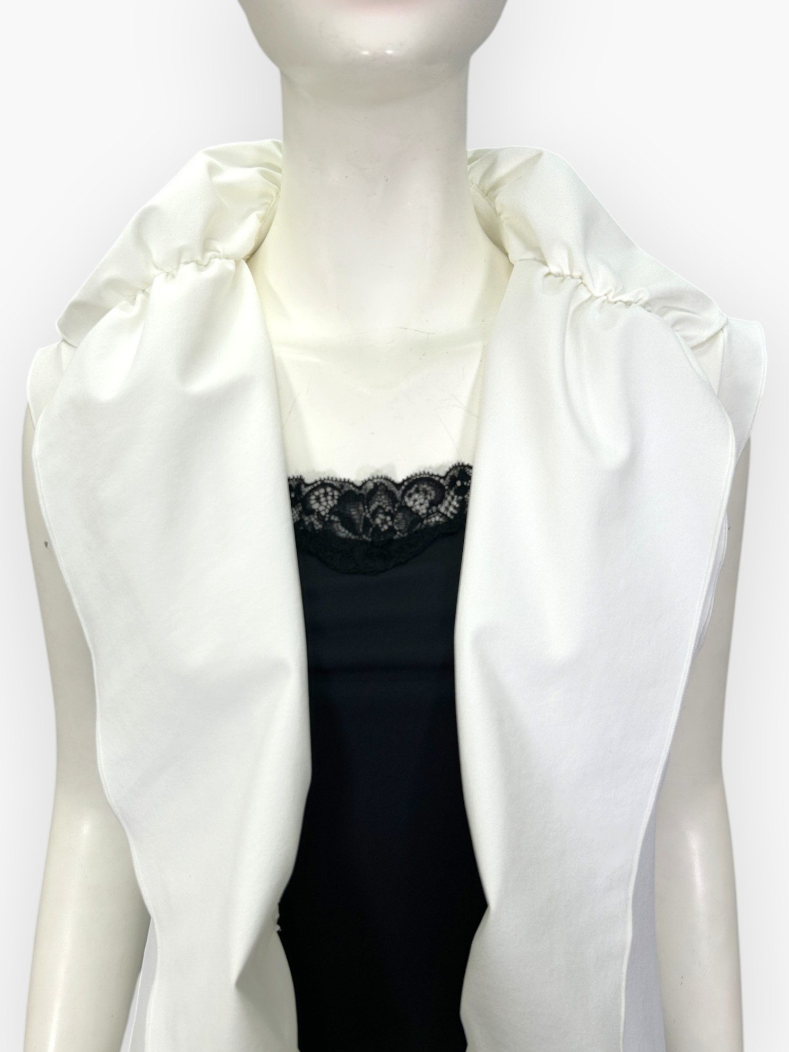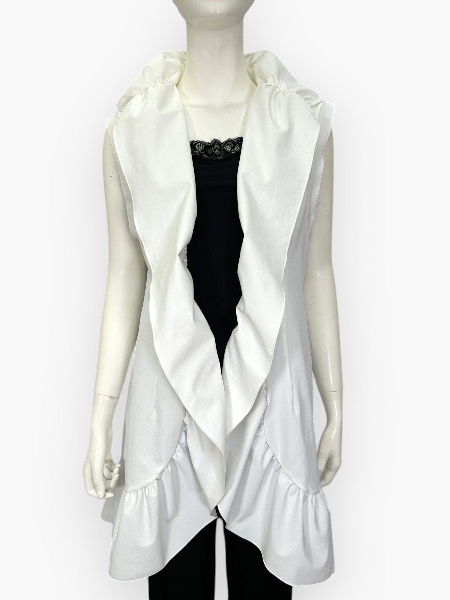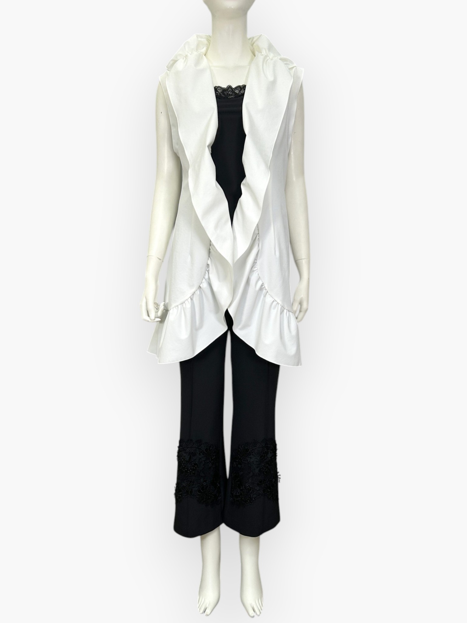 ギャザーを寄せたフリル使いがエレガントなジレ。