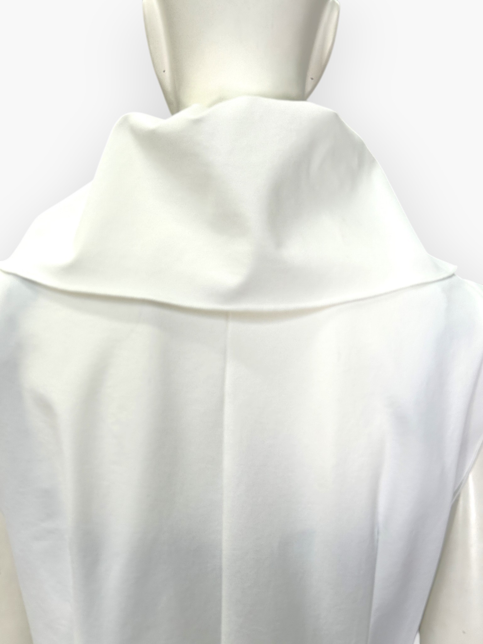 ギャザーで立体感を出したボリューミーな襟もポイント。