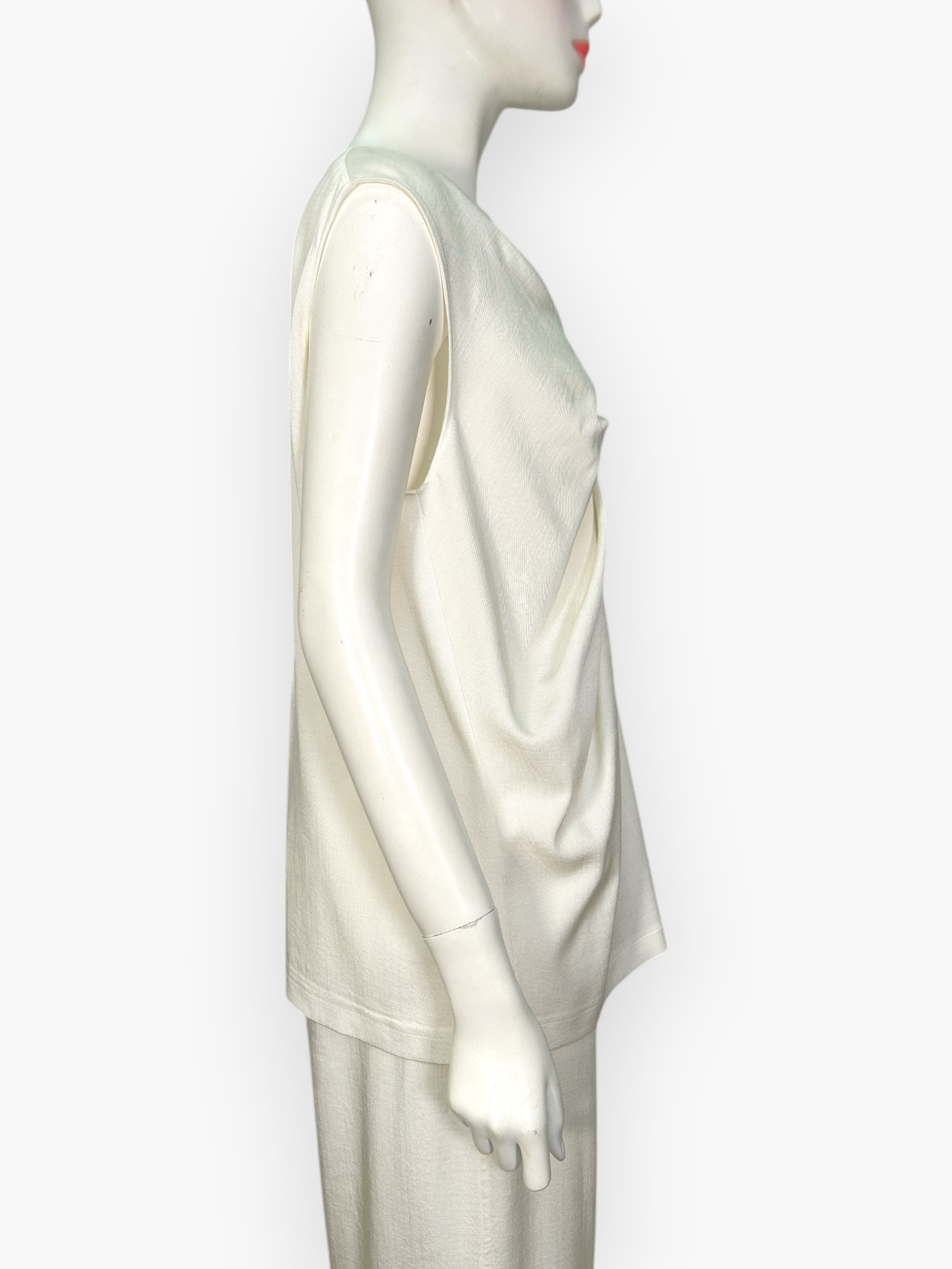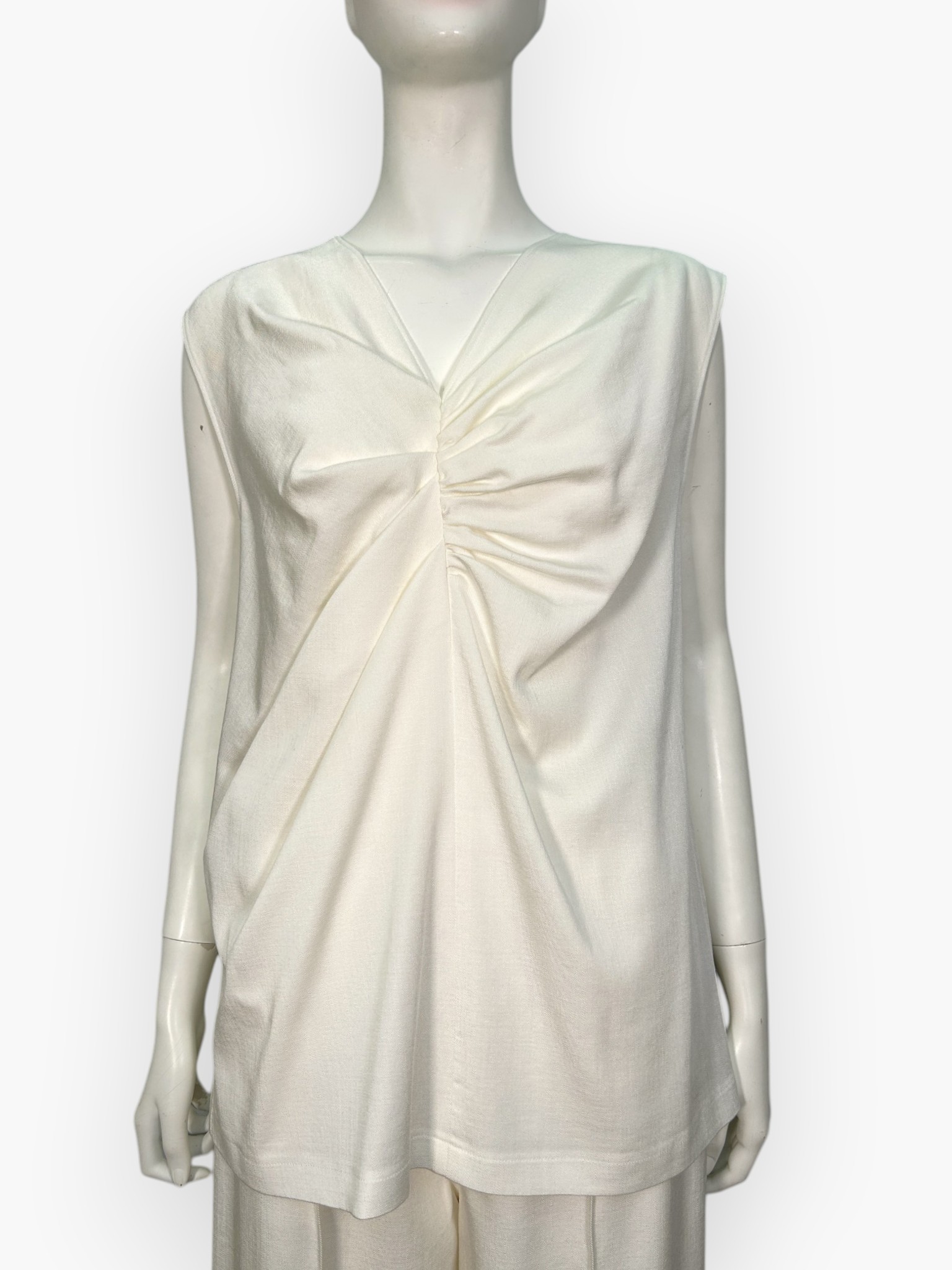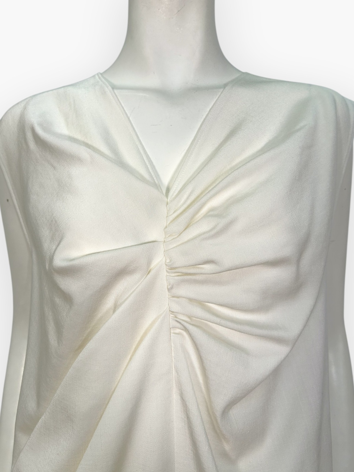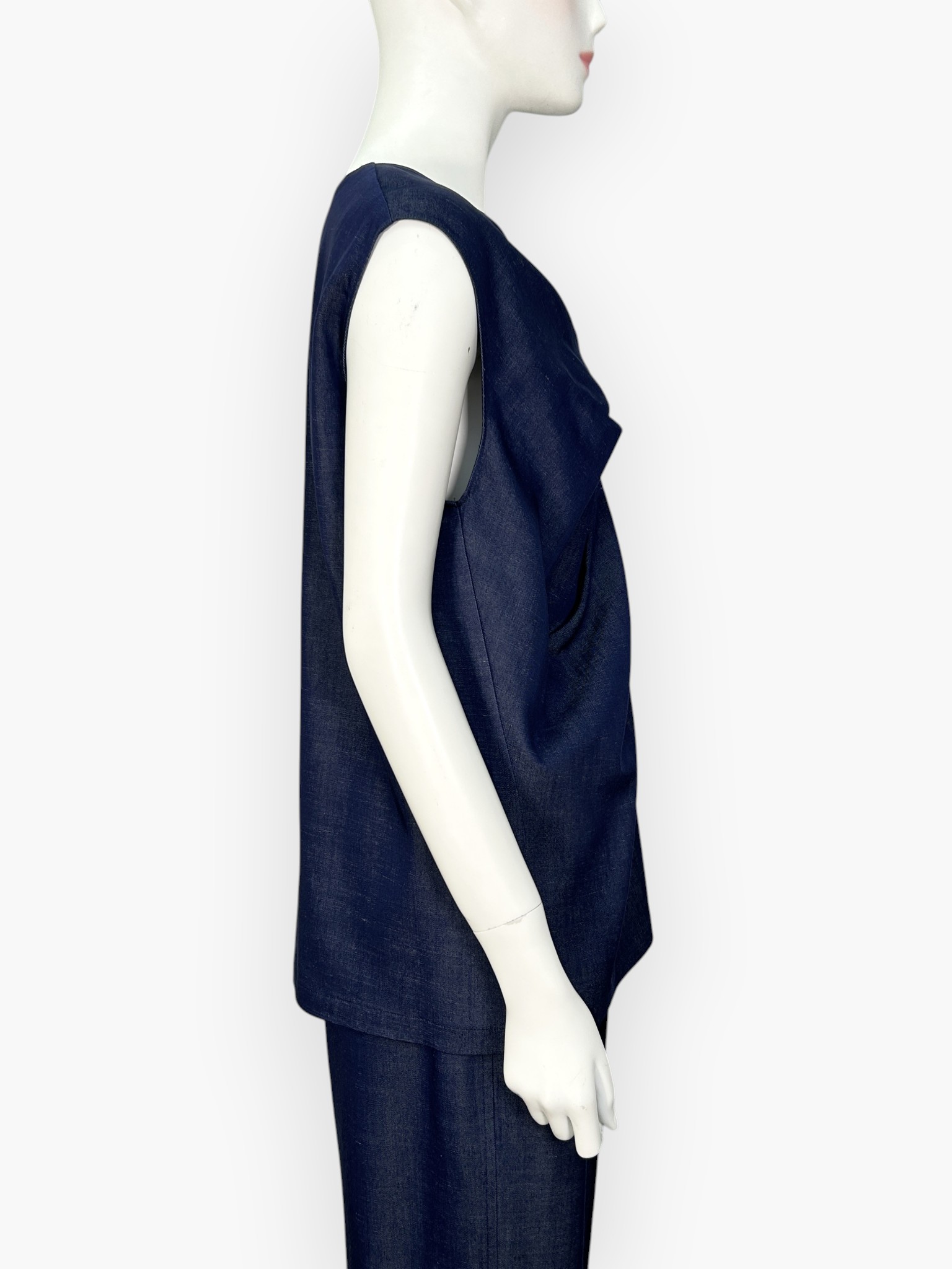光沢感のあるデニム調の素材をツイストして、新鮮な動きを持たせたプルオーバージレ。