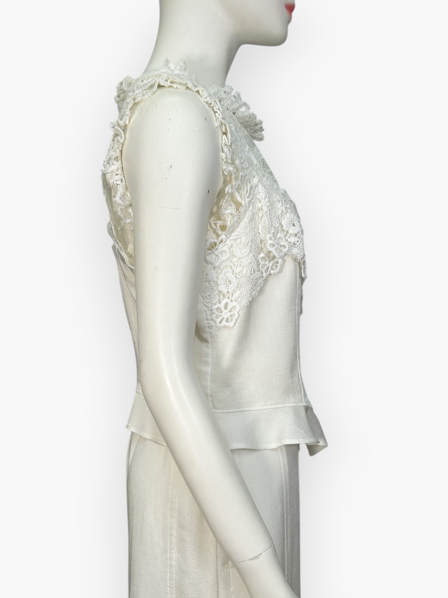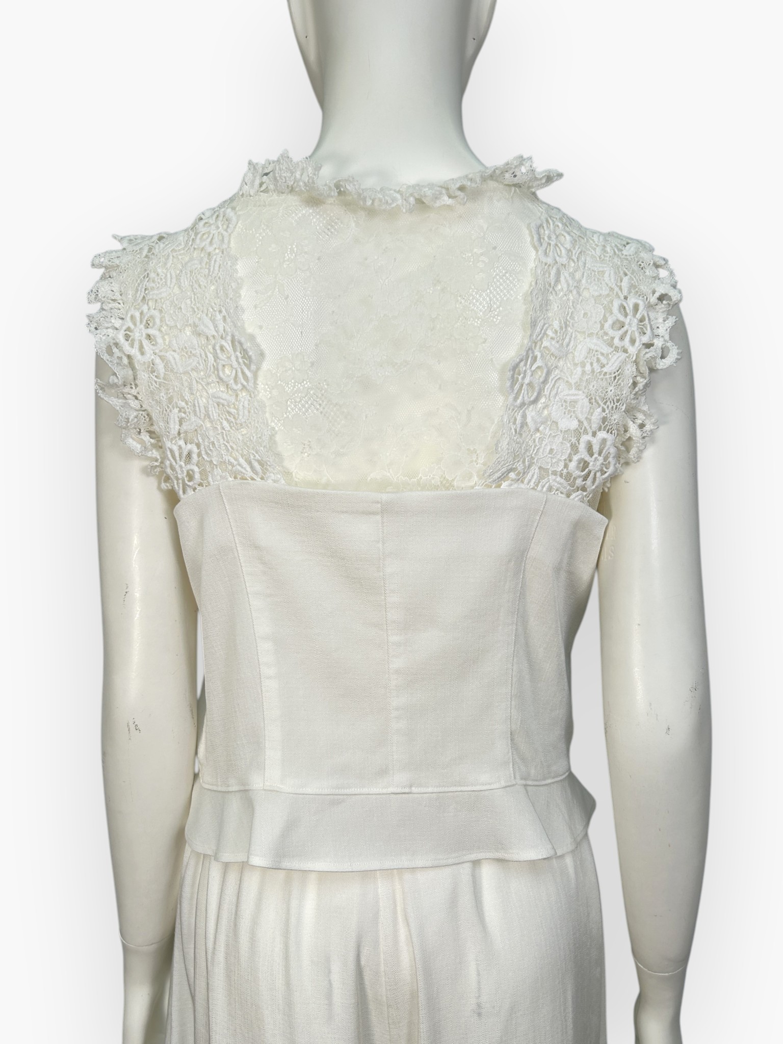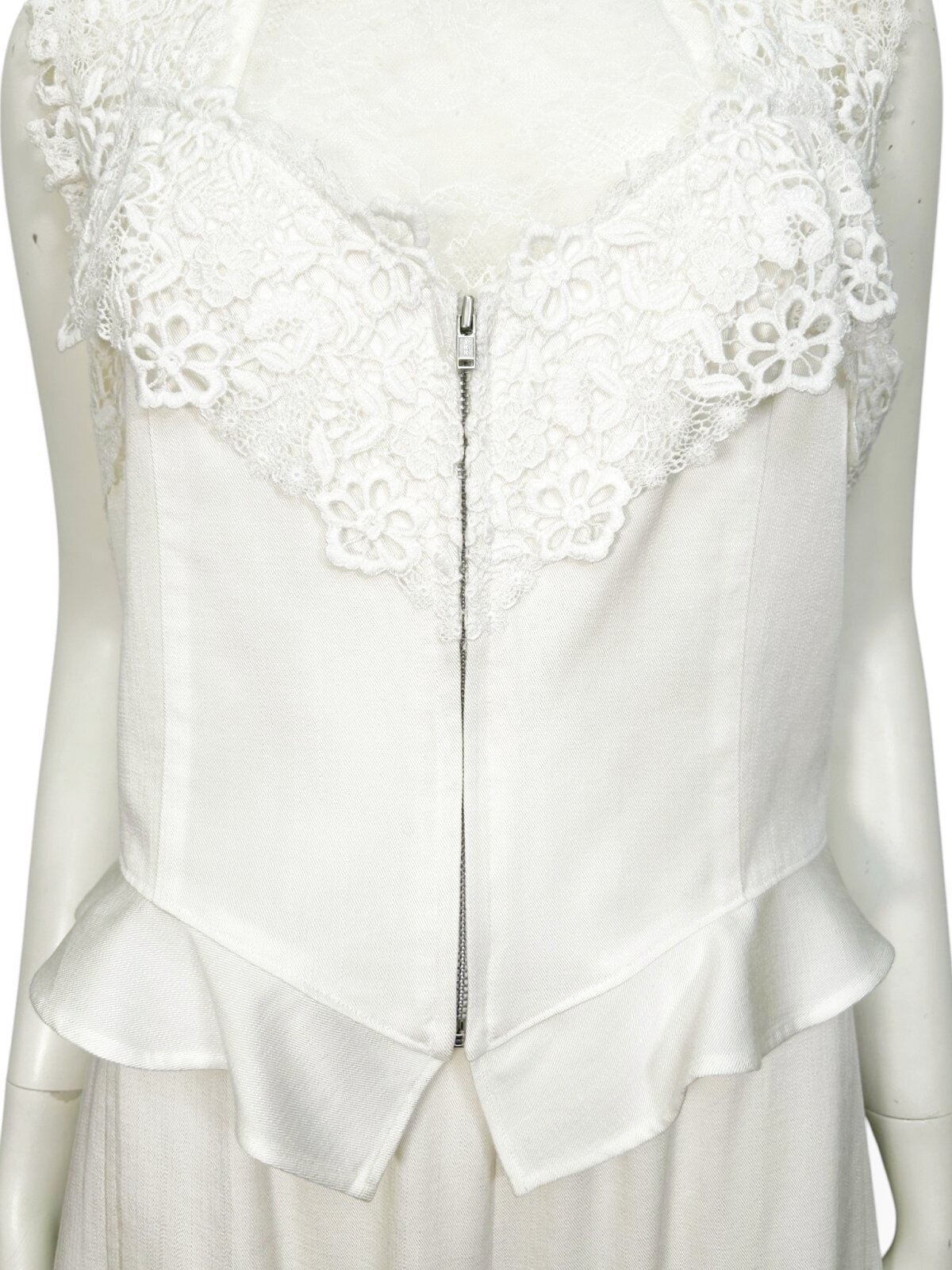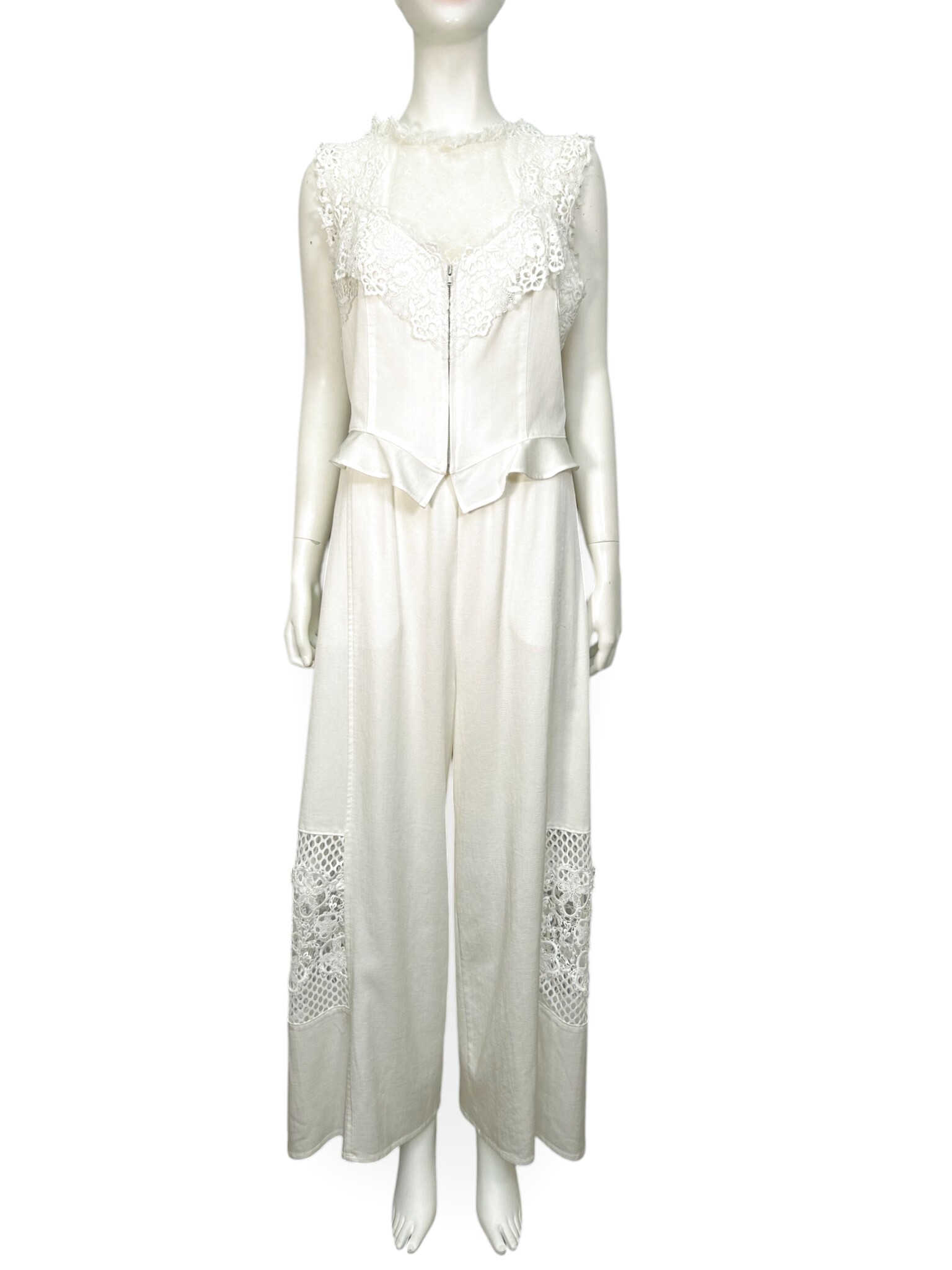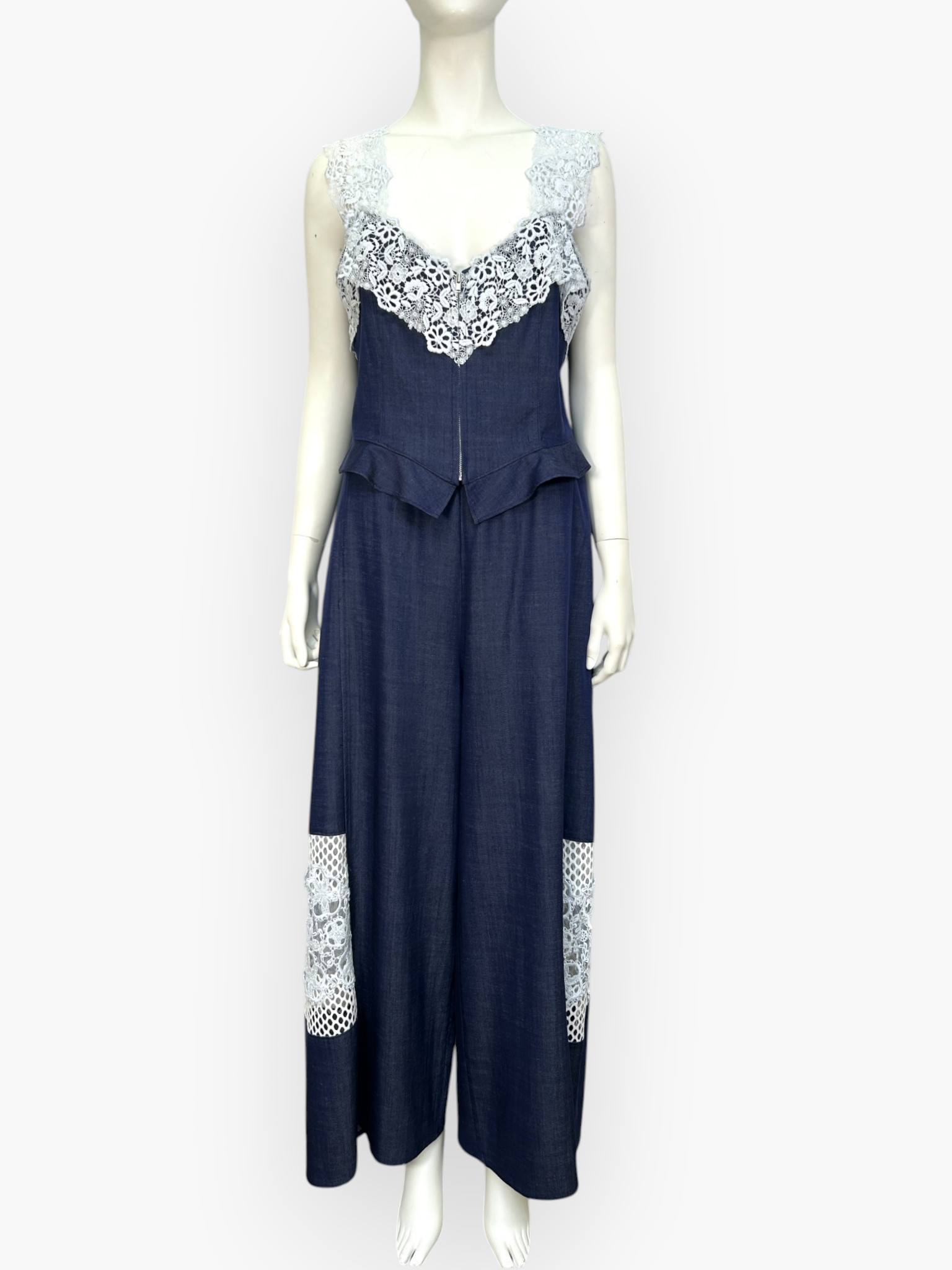 デニムのカジュアルさとコットンレースの甘さがバランスよくミックスされた大人っぽいジレ。
