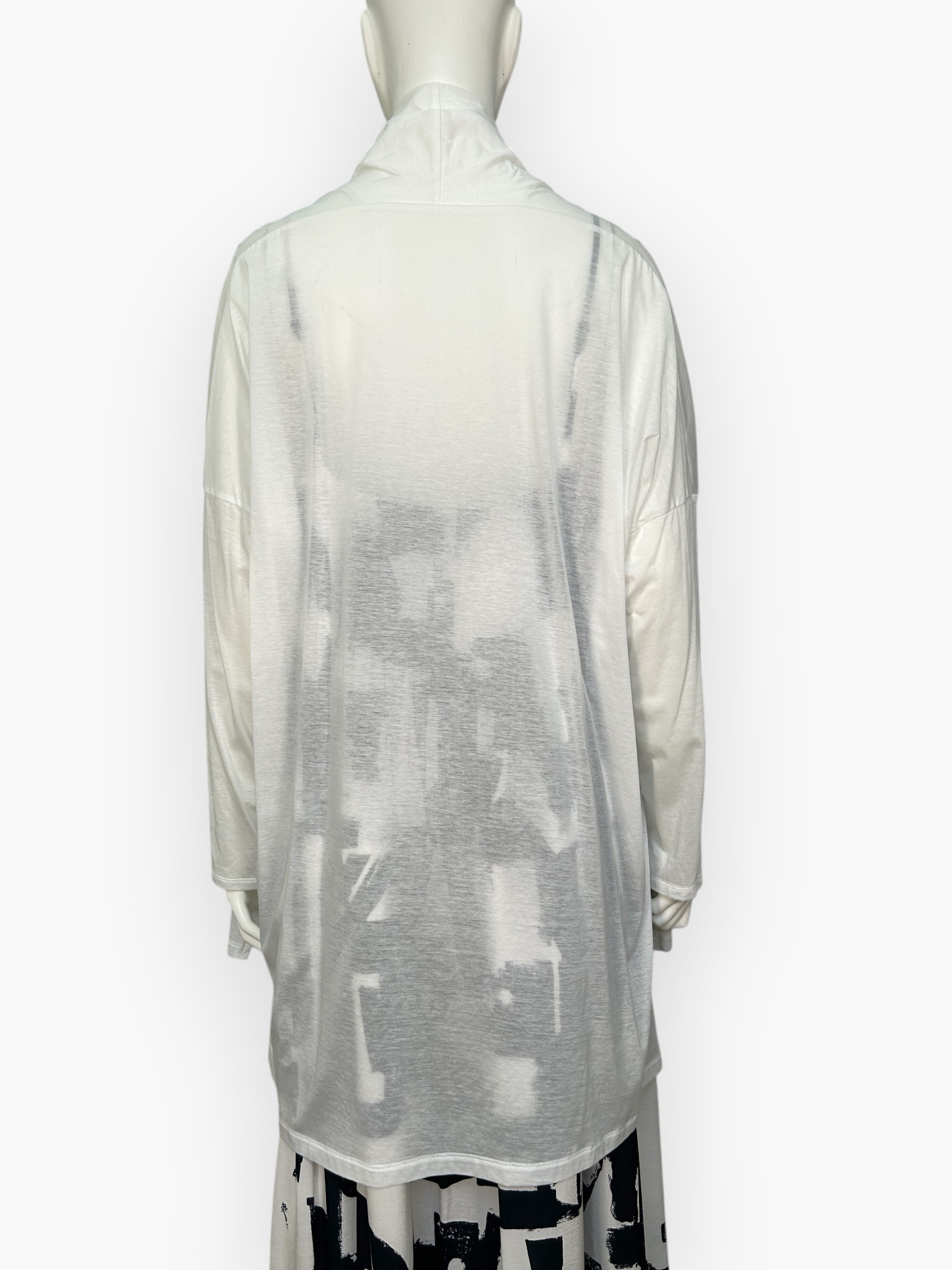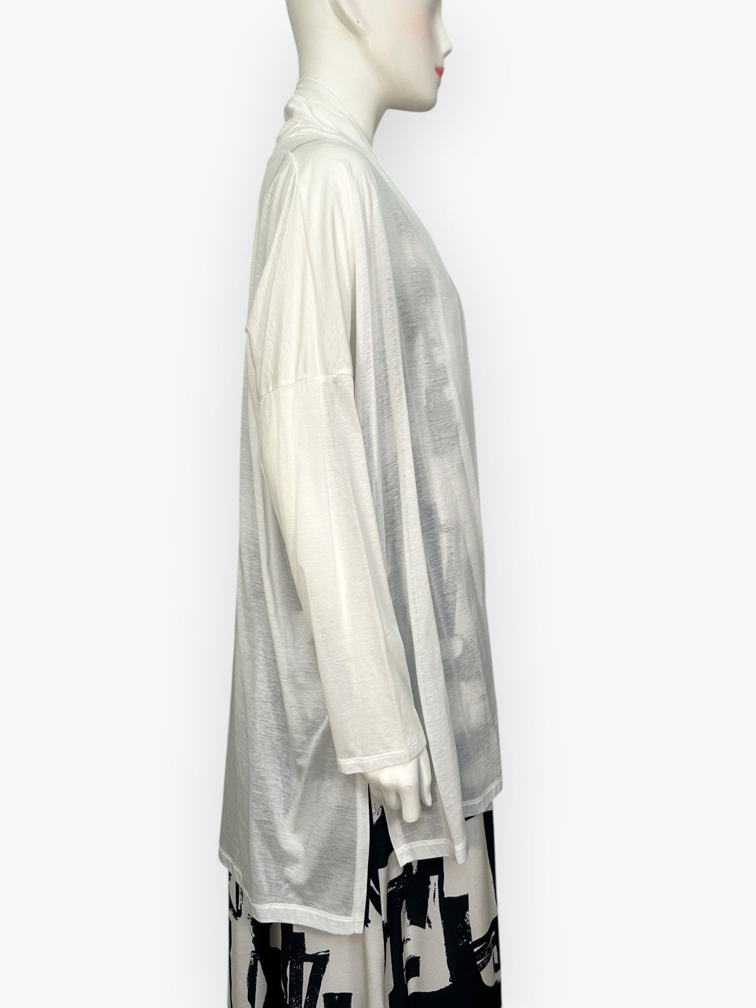 使いやすいヒップが隠れる着丈と透け感がある軽やかな素材はロングシーズン着まわせます。