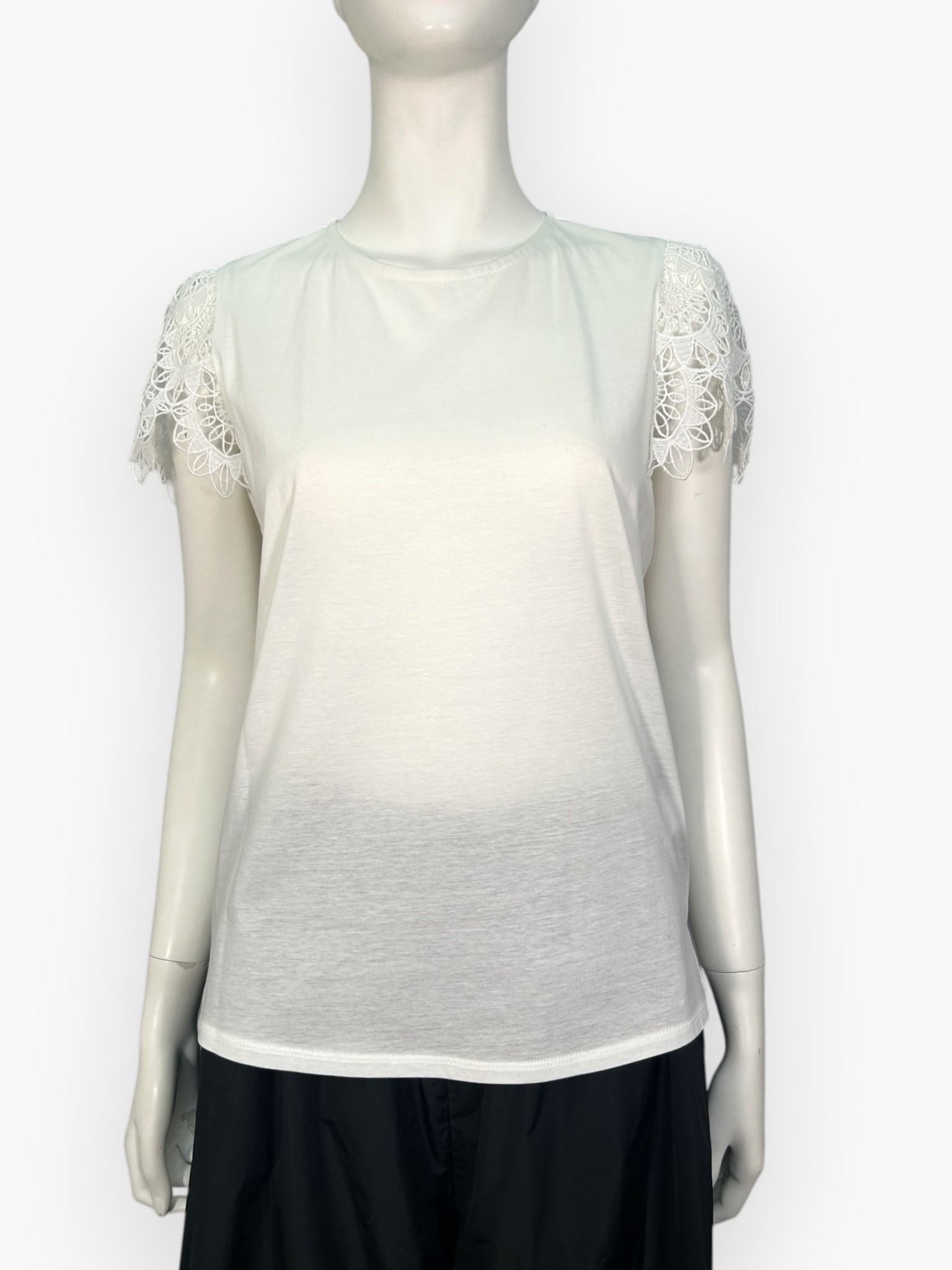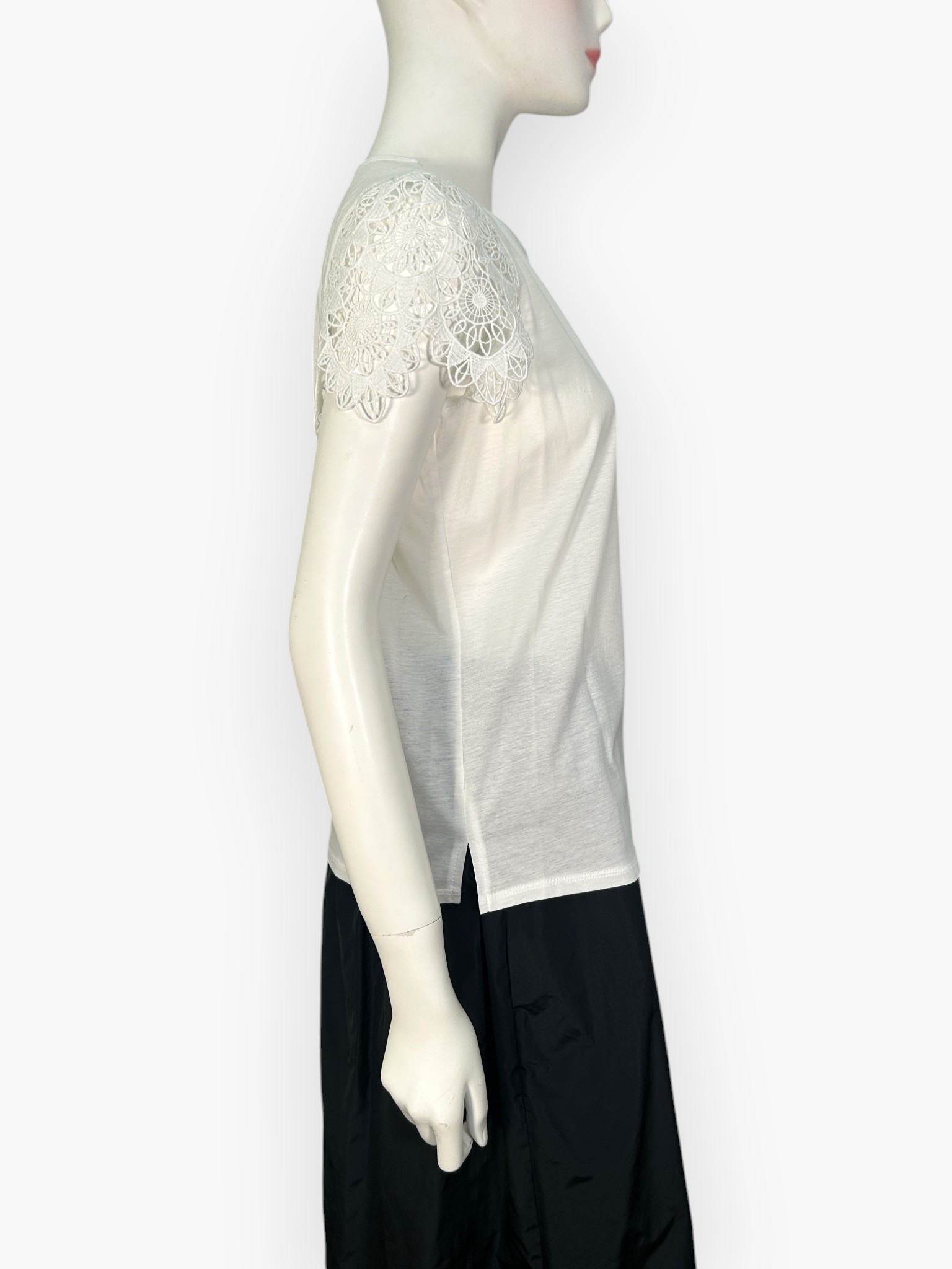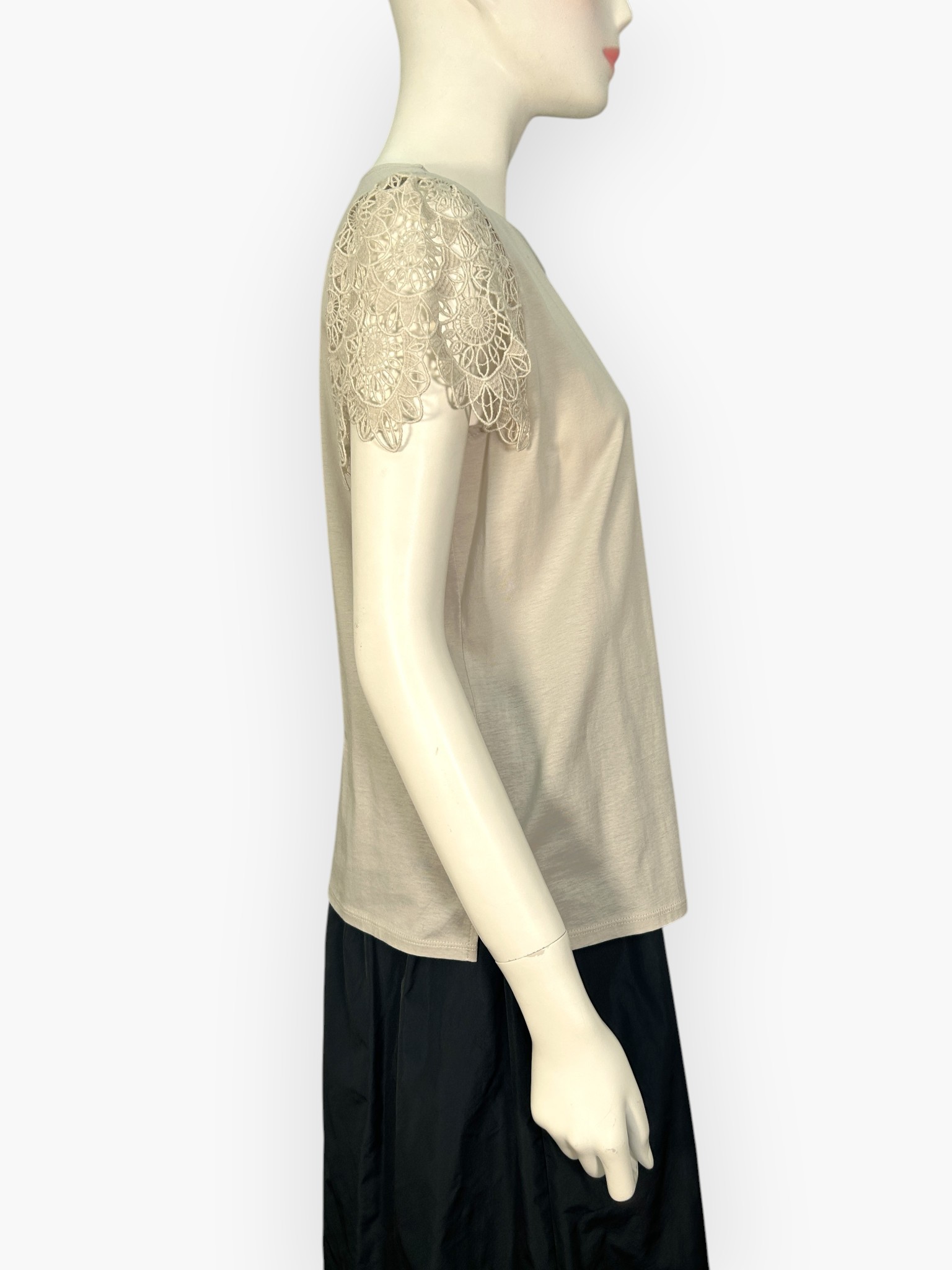 フラワーレースが上品で可憐な印象のカットソー。