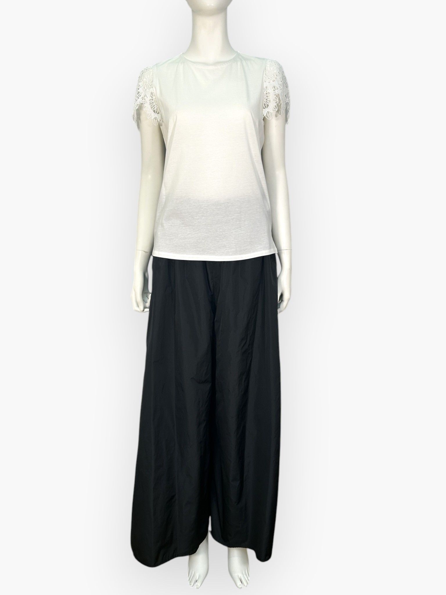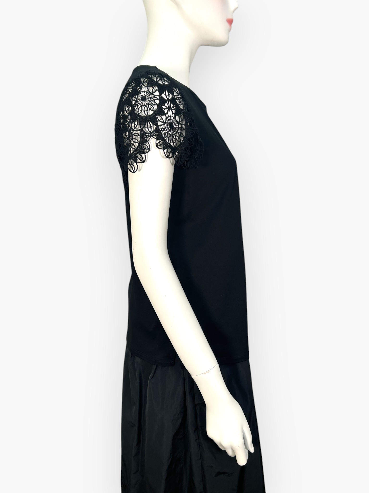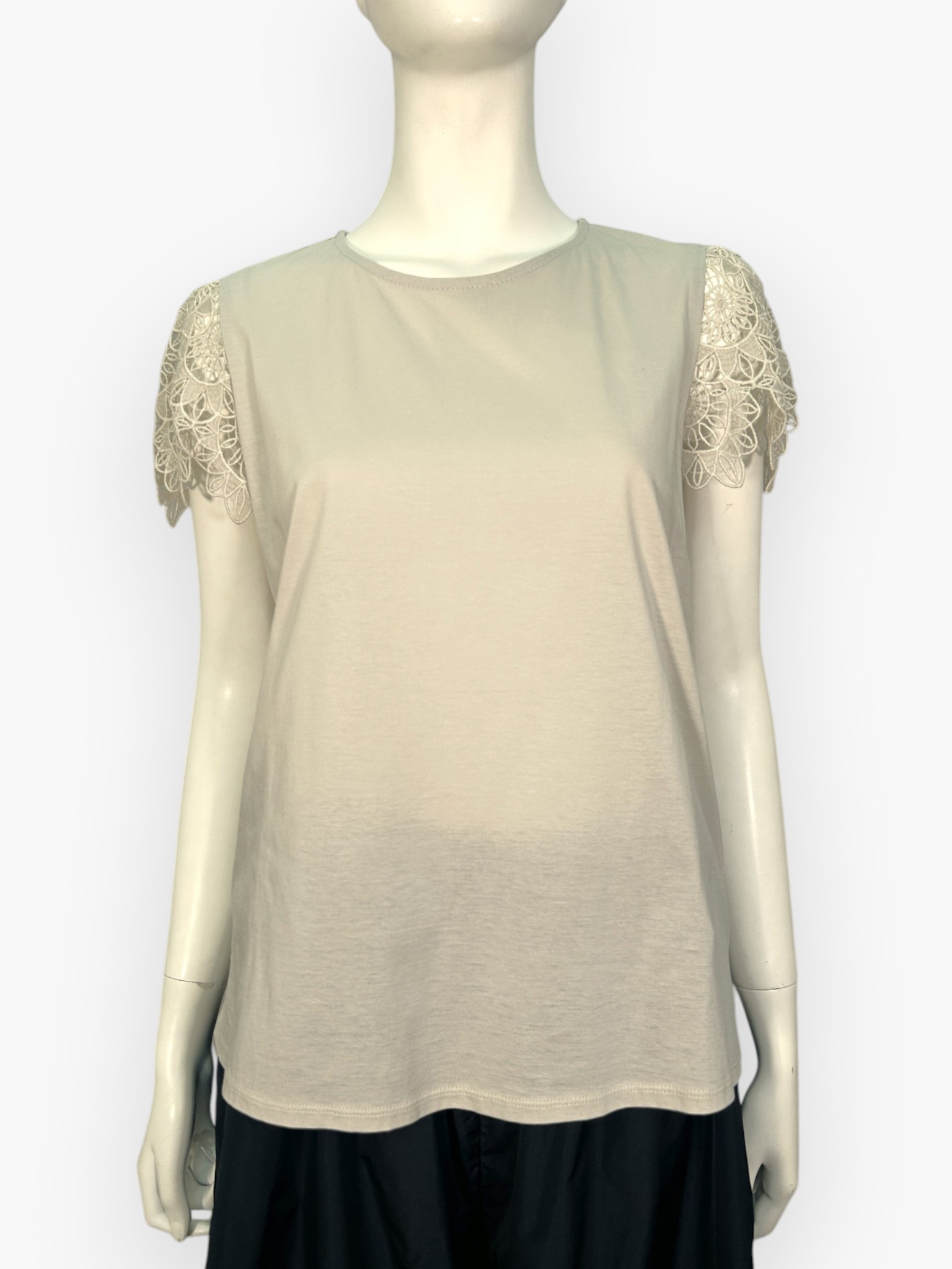 フラワーレースが上品で可憐な印象のカットソー。